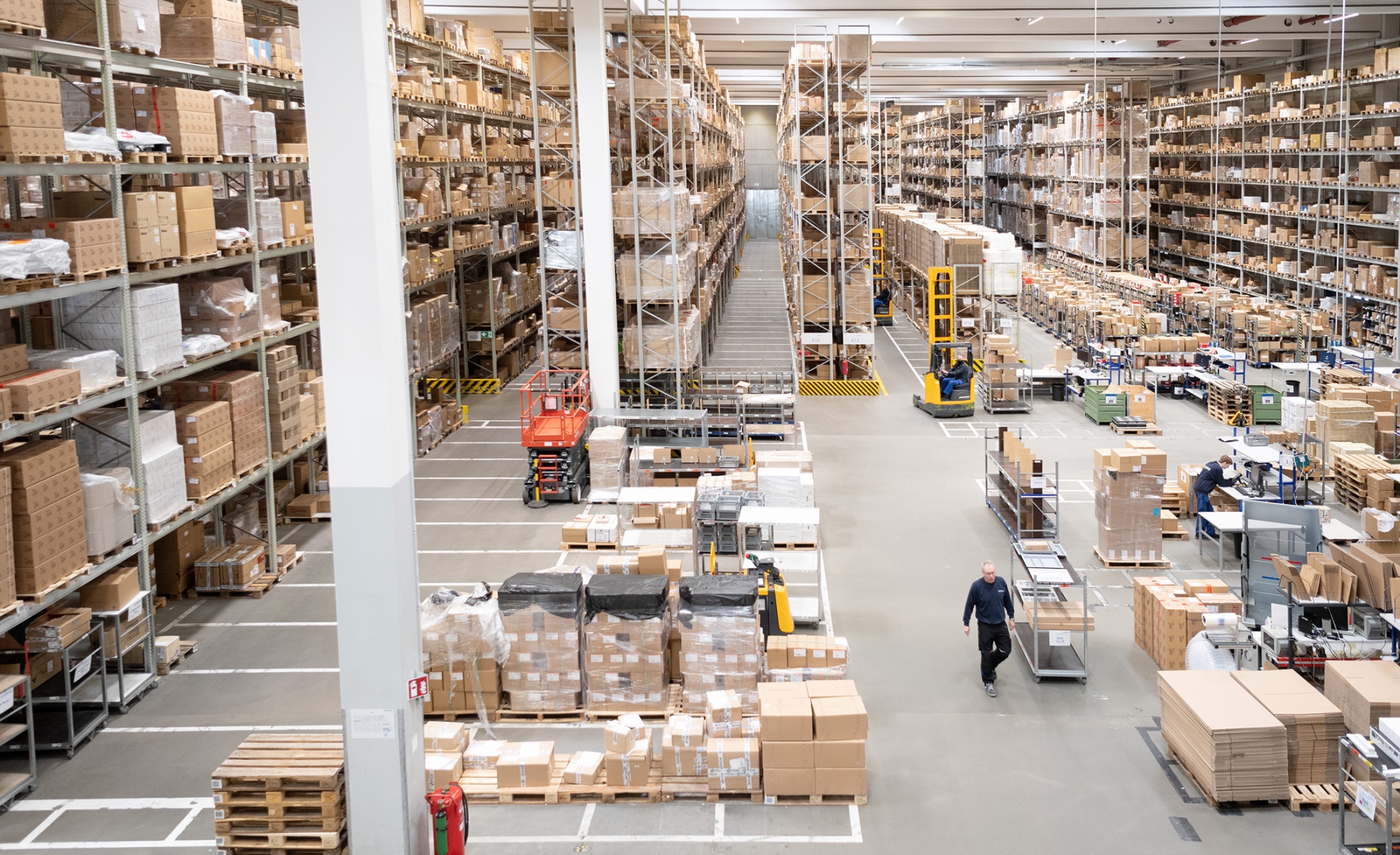 物流服务提供商Rhenus Warehousing Solutions的高架架和包装台。摄影师:Soeren Stache /picture alliance### 你应该阅读的内容