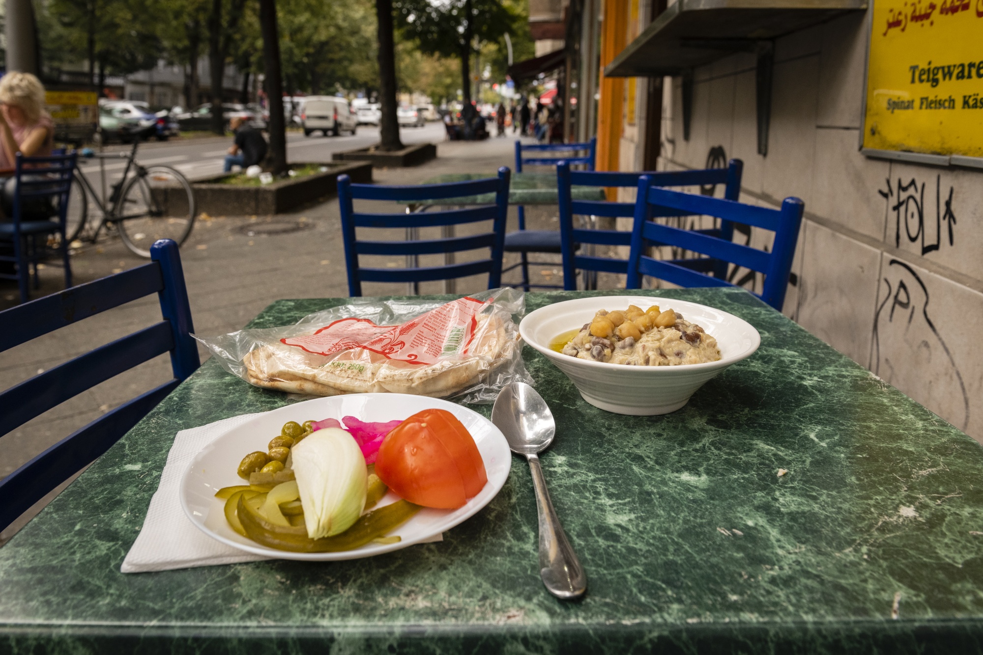 “当你踏入这条街时,你会忘记自己在德国,”21岁的巴勒斯坦人雅曼·阿齐默(Yaman Azimeh)说,他是从大马士革的雅尔穆克难民营作为儿童移居到柏林的。
