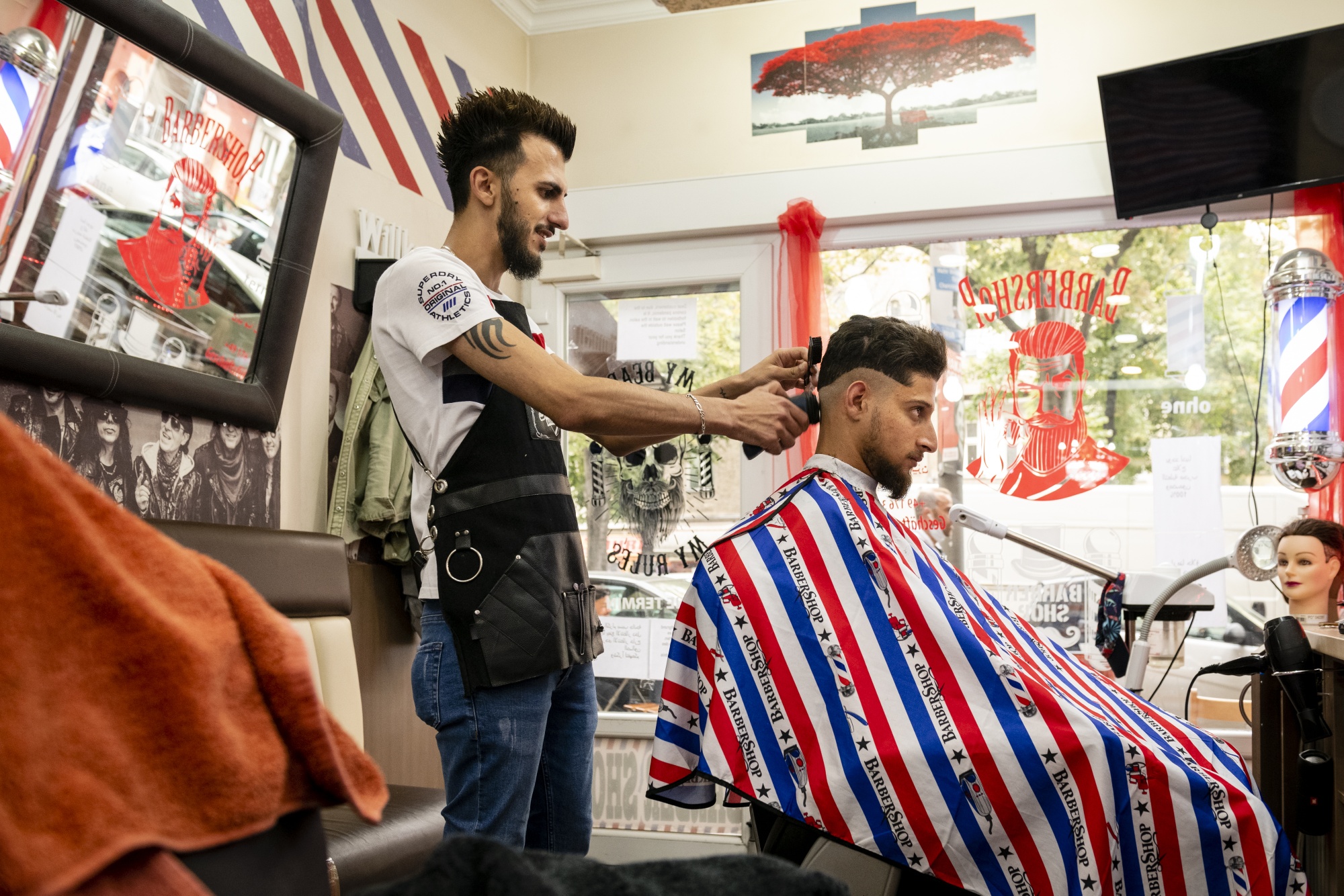 “这就像在家一样,”27岁的哈马德说,他是一名巴勒斯坦人,在大马士革难民营出生长大。“我们知道如何修剪胡须比德国人做得更好。但他们在染发方面更擅长。”