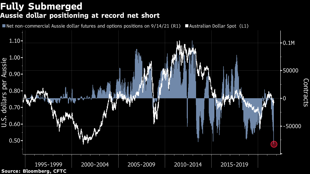 不仅仅是爱丽舍宫对澳大利亚发起了战争。对澳大利亚元的空头押注已经增加到创纪录水平。根据商品期货交易委员会最新数据显示,上周货币的净空头非商业期货和期权头寸达到了有史以来最高水平。澳元上周对美元是G10货币中表现最差的,伴随着铁矿石价格暴跌和为应对冠状病毒爆发而实施的持续封锁。