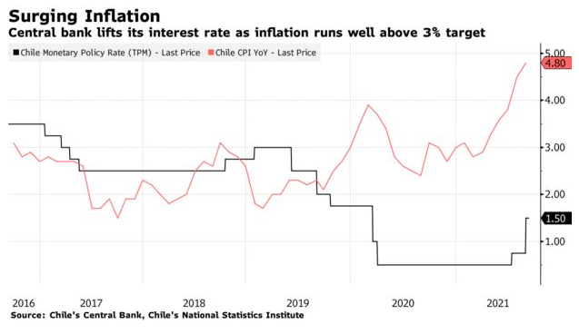 预测显示,由于从疫情初期的复苏开始,智利国内生产总值今年将激增超过11%,这是主要经济体中增速最快的,详情请参阅这篇报道。