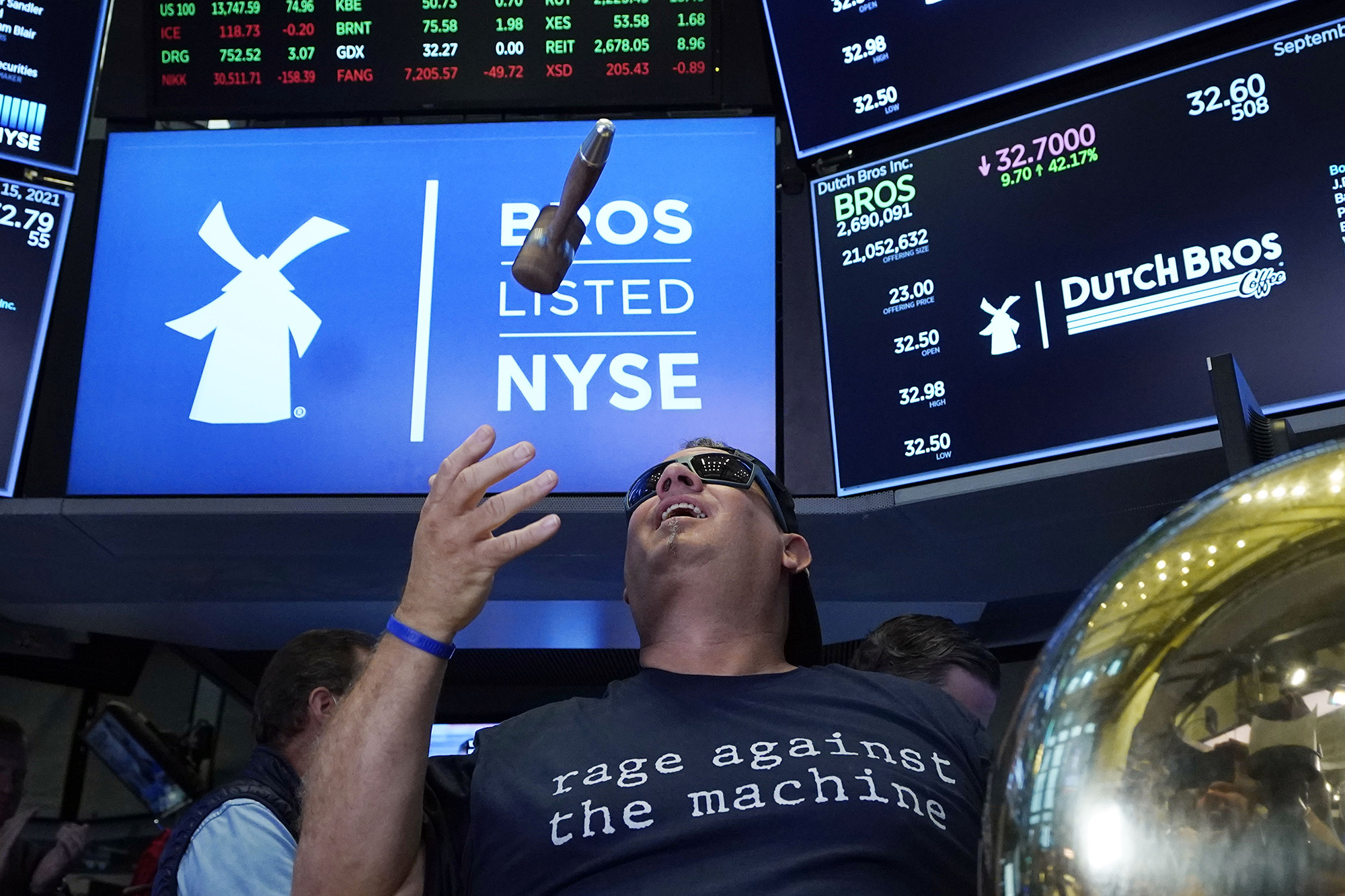 荷兰兄弟咖啡创始人兼执行主席特拉维斯·博尔斯马在纽约证券交易所。摄影师:理查德·德鲁/AP照片一些值得关注的品牌:高端发廊产品品牌Olaplex本周推出其首次公开募股,寻求超过10亿美元。Sovos Brands,由Advent支持的Rao’s Homemade意大利面酱和Noosa酸奶的所有者,以及在线钻石销售商Brilliant Earth将于周四首次亮相。