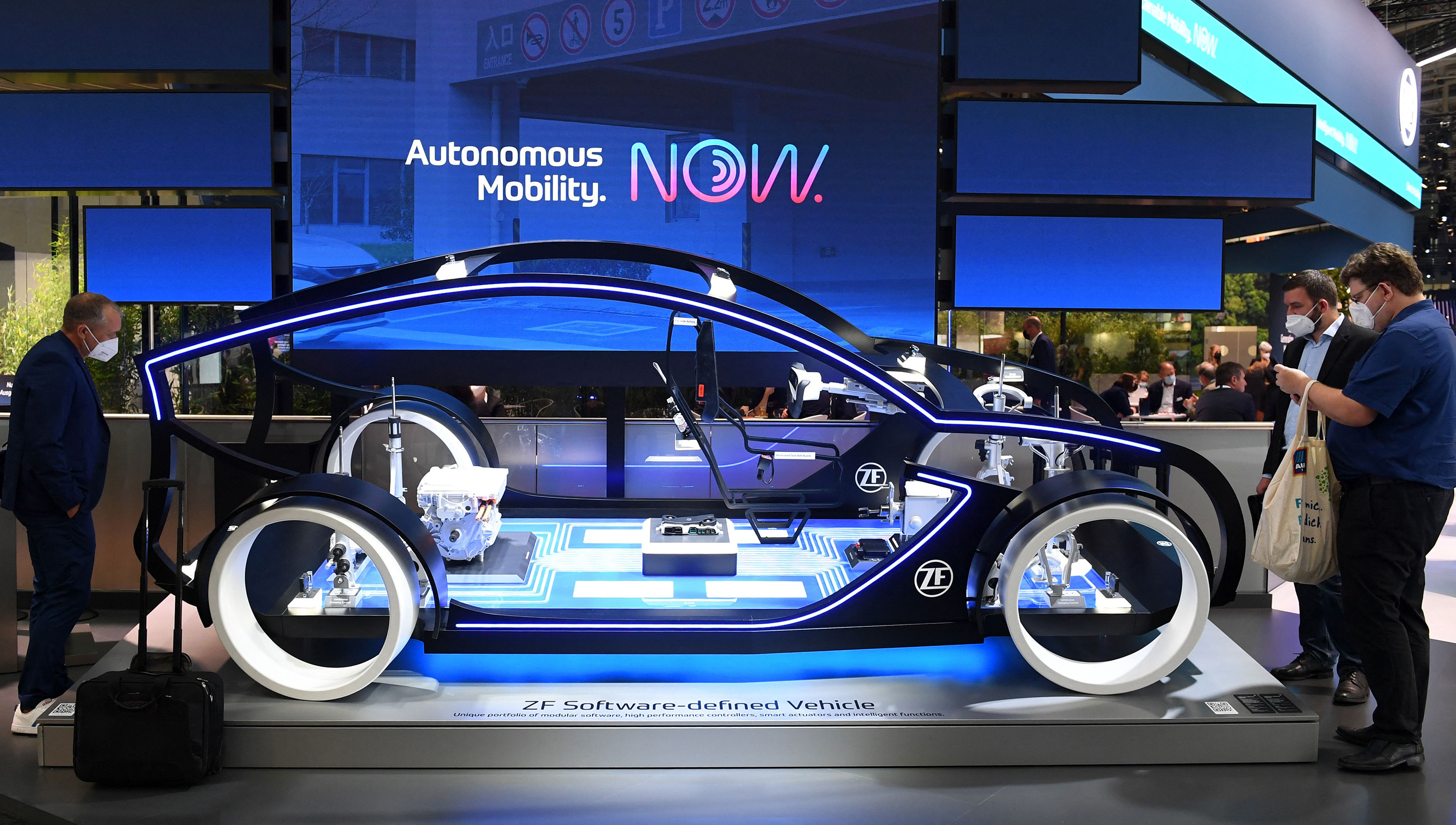 ZF软件公司在9月7日于慕尼黑举行的国际汽车展(IAA)上展示的自动驾驶移动展台。