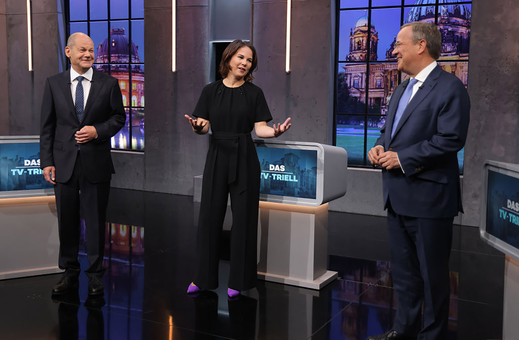 奥拉夫·肖尔茨、安娜莱娜·贝尔博克和阿尔敏·拉舍特在9月19日的最后一场电视辩论中。摄影师:肖恩·加利普/盖蒂图片社欧洲点击 这里 关注彭博政治在 Twitter 上的动态,并告诉我们我们做得如何或者我们错过了什么,发送邮件至 [email protected]*。*