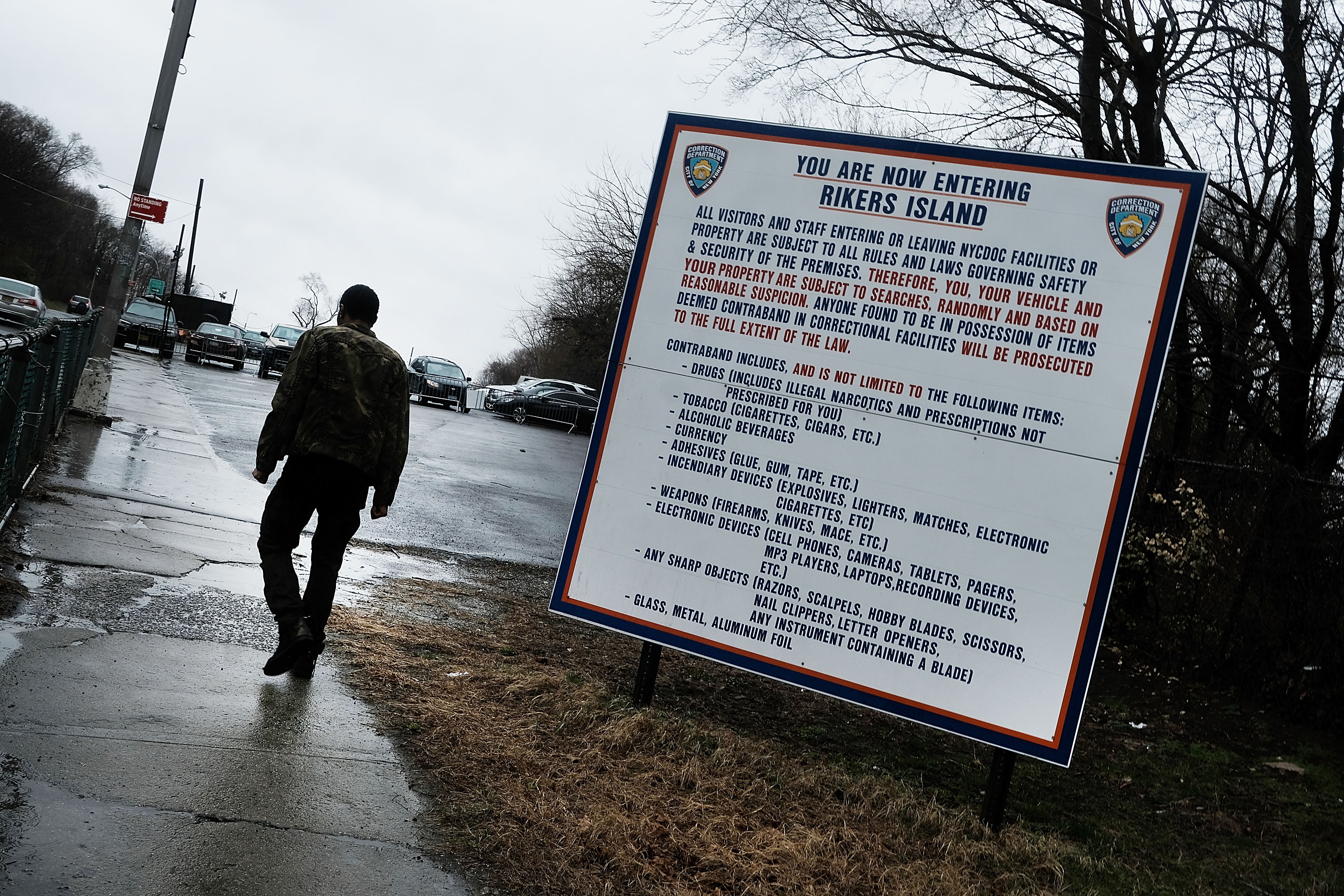 一个男人于2017年3月31日进入纽约市里克斯岛的道路。