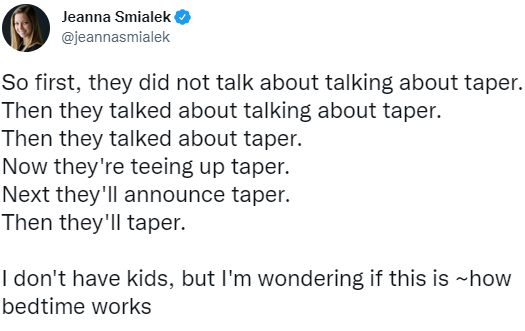 - 缩减时间 | 美联储主席杰罗姆·鲍威尔表示,美国央行可能会在11月开始缩减资产购买,并在2022年中旬完成这一过程,此前官员们透露他们越来越倾向于明年加息。