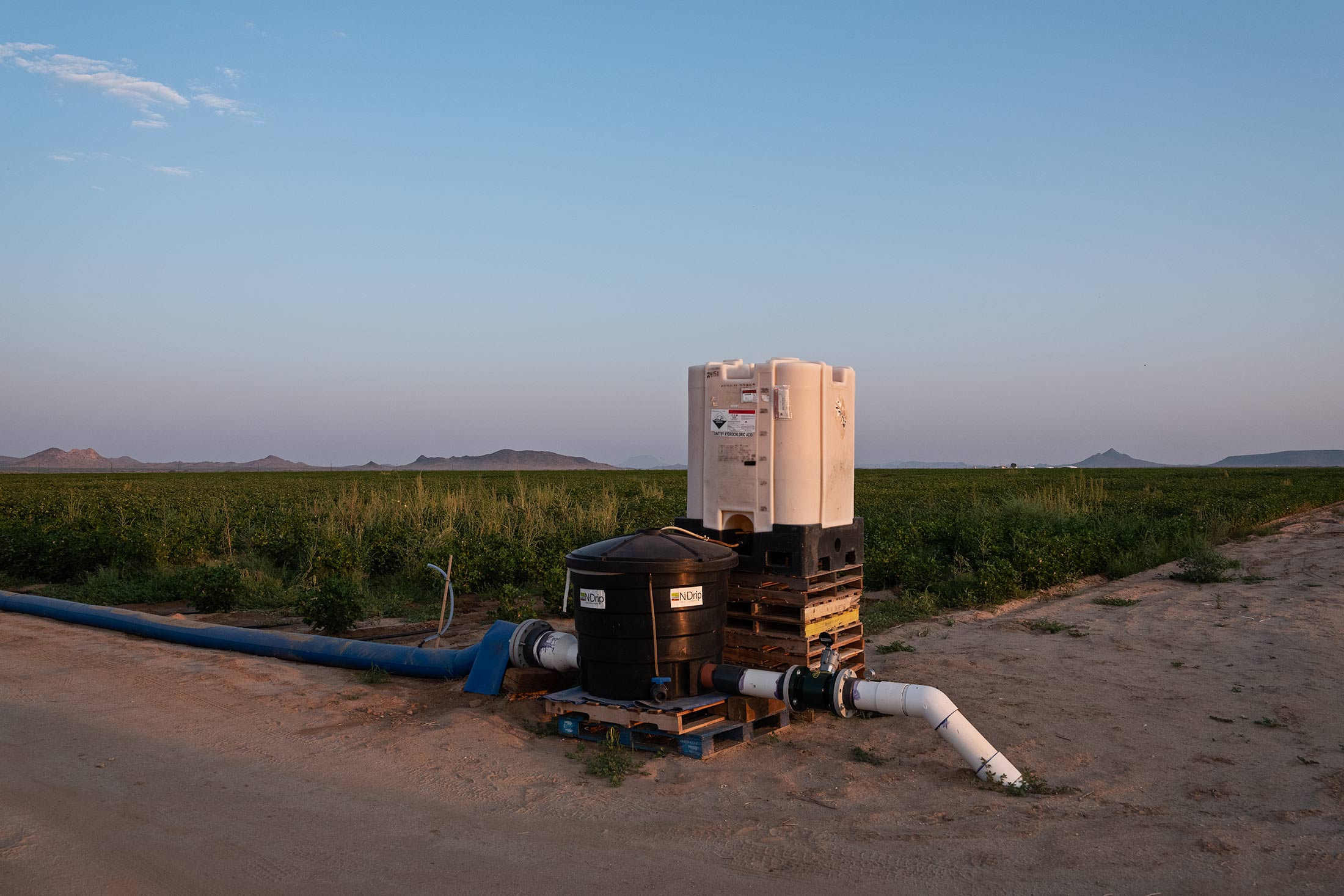 在亚利桑那州干旱的西侧,科罗拉多河流域与莫哈韦沙漠相遇的地方,有一片占地11,000英亩的苜蓿、高粱、小麦和苏丹草地,属于科罗拉多河印第安部落(CRIT),所有作物都注定要被收割并出售作为动物饲料。在这里,任何植物要生长,都必须灌溉。根据管理部落农场的乔什·摩尔(Josh Moore)所说,今年迄今为止只下了不到四分之一英寸的雨。