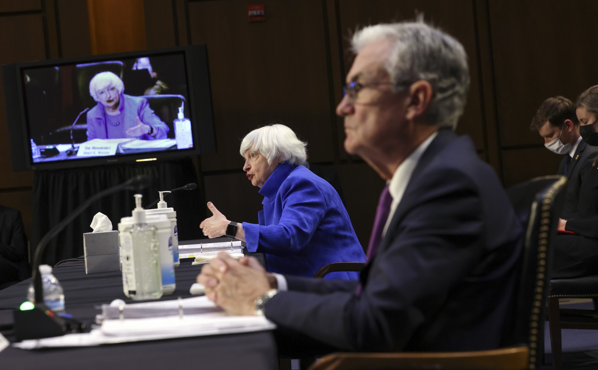 美国财政部长贾娜·耶伦和美联储主席鲍威尔在参议院银行、住房和城市事务委员会听证会上作证