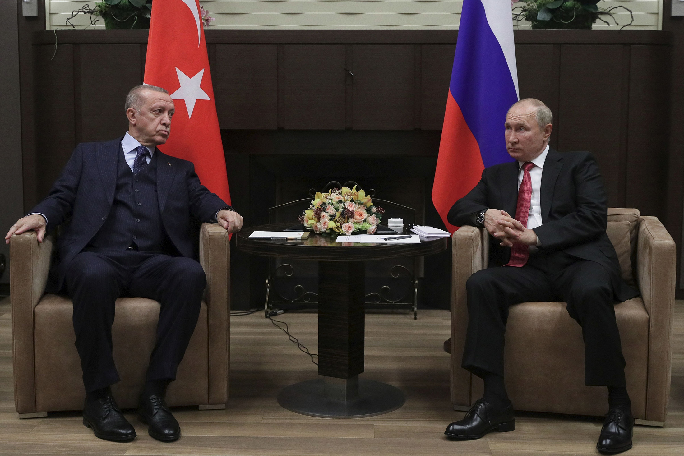 普京和埃尔多安昨天在索契会面。摄影师:弗拉基米尔·斯米尔诺夫/法新社/盖蒂图片社