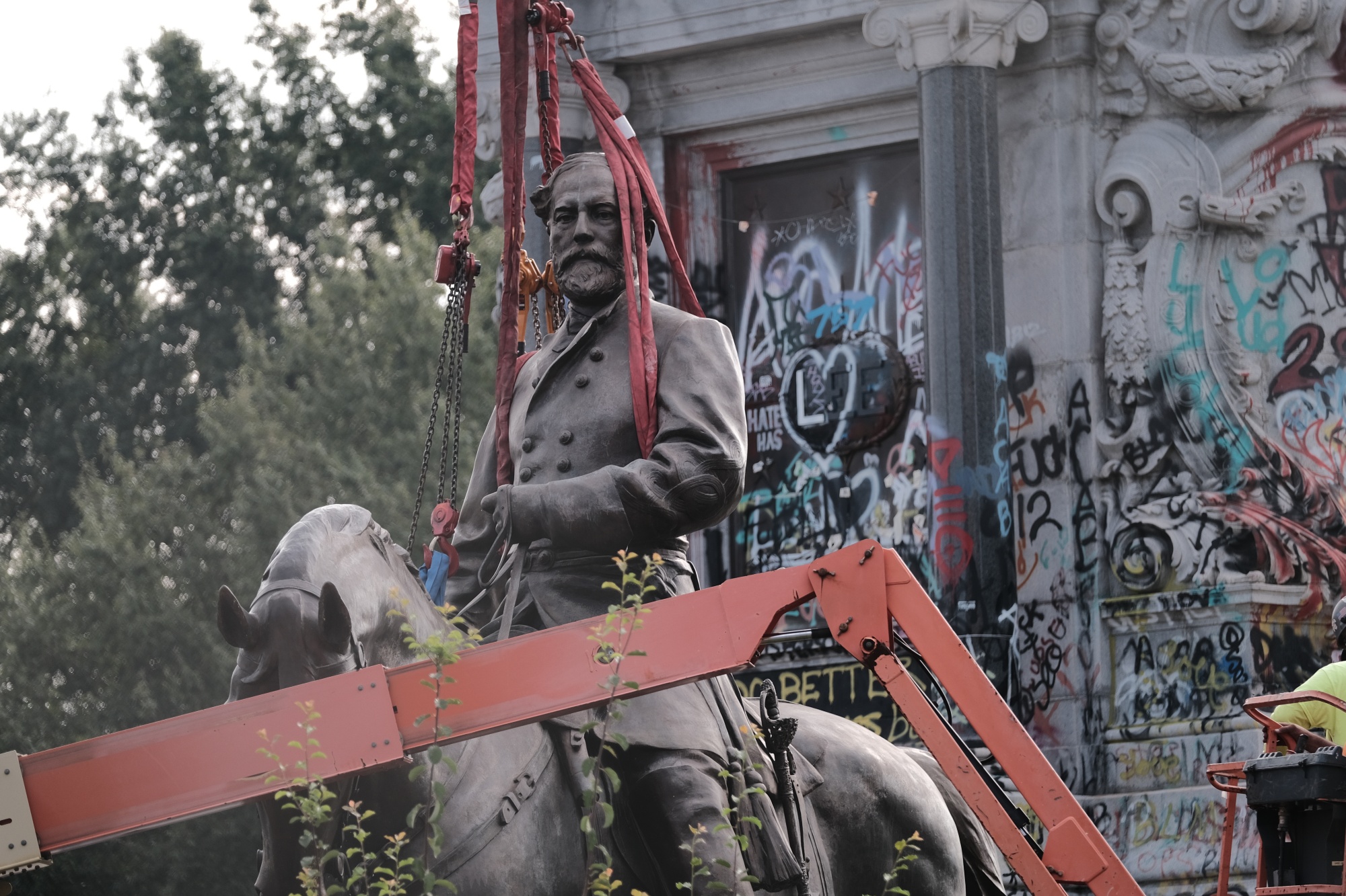 工人们在2021年9月移除弗吉尼亚州里士满的罗伯特·李雕像。摄影师:Eze Amos/Getty Images North America审计的可搜索地图功能突显了人口统计和历史趋势。例如,可以绘制出一个卡西米尔·普瓦斯基腰带,这是一系列纪念碑,致力于美国骑兵之父、受人尊敬的华沙出生的波兰人,追溯波兰移民路线从东北部到五大湖地区。当然,作为美国,一个为严肃的历史追求而设的数据库也可以作为输入纯粹愚蠢内容的搜索栏。国家令人惊讶慷慨的小丑雕像似乎分布在密歇根州大急流城和堪萨斯州威奇托之间。也许只有蒙大拿州乔利埃特的居民能解释该镇的金属热狗仙人掌是怎么回事。