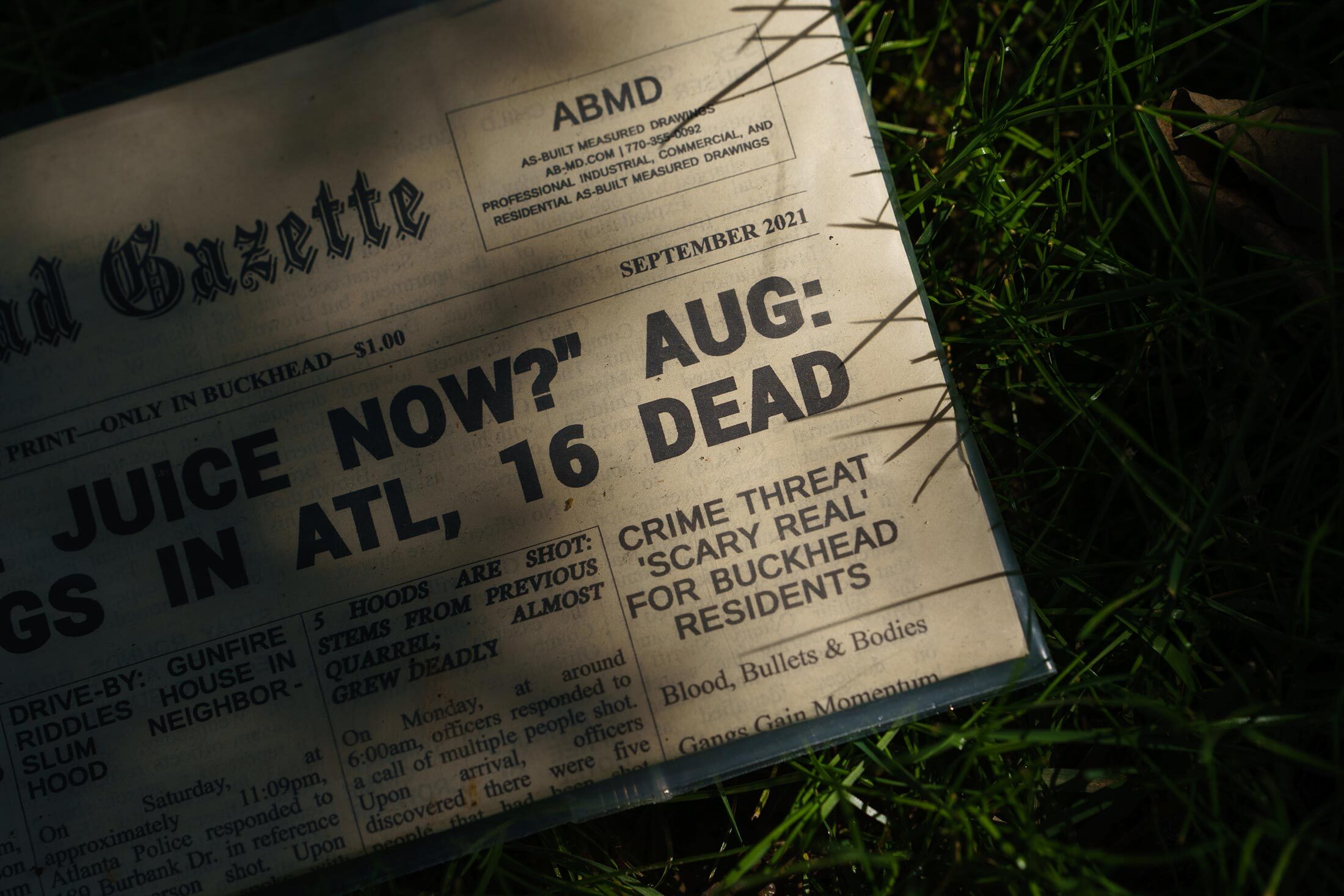 《巴克黑德公报》是一份仅限印刷的报纸,似乎专注于亚特兰大地区的犯罪和暴力事件。摄影师:彼得·埃利亚斯与许多其他美国大城市一样,亚特兰大最近经历了暴力袭击和凶杀案的增加。在巴克黑德所在的警察区域,截至9月11日,今年已发生48起枪击事件,比去年同期增长了50%,比2019年同期增长了167%。但这并不是亚特兰大犯罪最严重的地区。截至9月11日那周,与亚特兰大周围其他五个警察区相比,巴克黑德区在2021年的谋杀案、枪击事件、抢劫案和入室盗窃案件都较少。