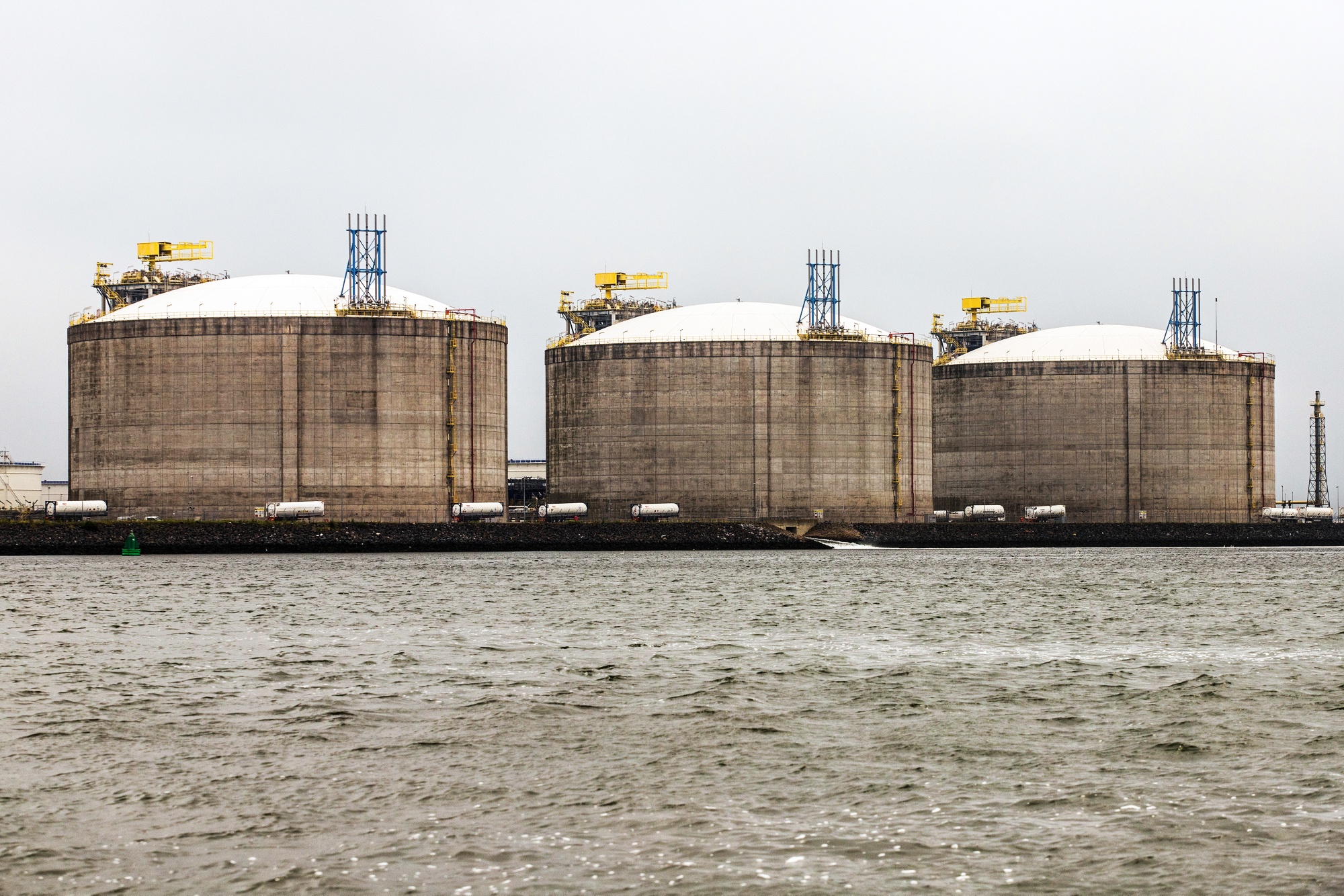 荷兰鹿特丹港口的Yukonhaven终端的液化天然气(LNG)储罐
