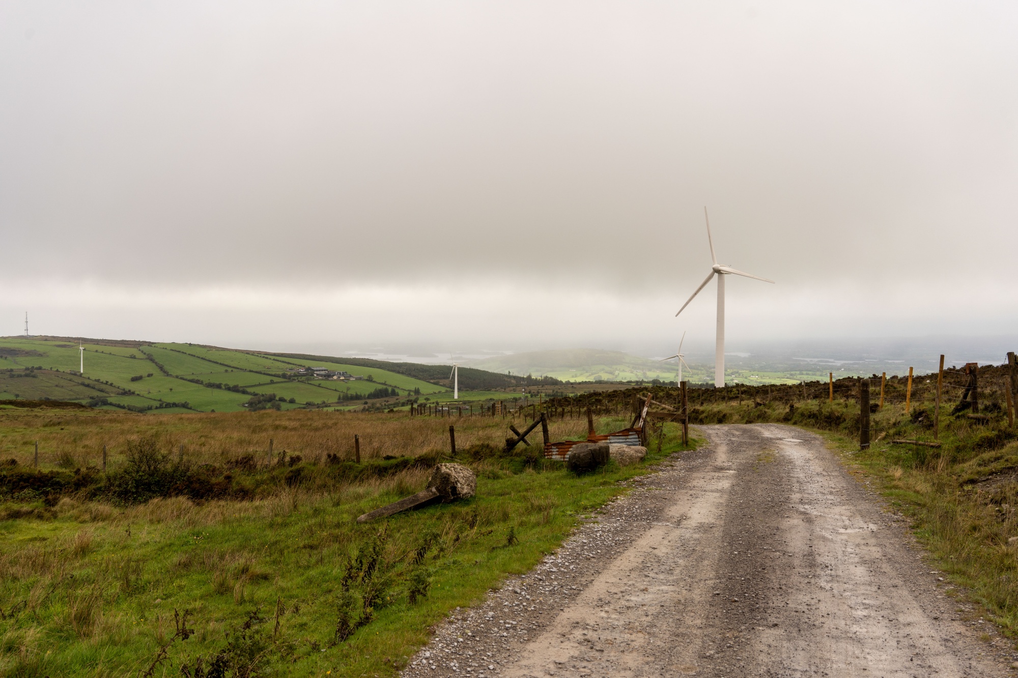 北爱尔兰斯利夫·鲁申风电场上的一台风力涡轮机。爱尔兰的电力网警告称,在未来五年的冬季可能会出现电力容量短缺。