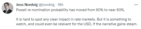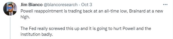 鲍威尔本人已宣布对交易政策进行审查,以意图加强这些政策。与此同时,白宫尚未显示出即将决定主席职位的迹象。