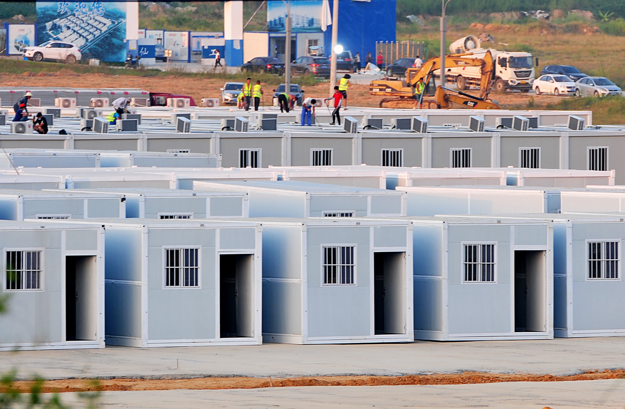 福建省一个工业园区正在建设一个拥有1,000个临时隔离房间的隔离中心。摄影师:张斌/中国新闻社/盖蒂图片社