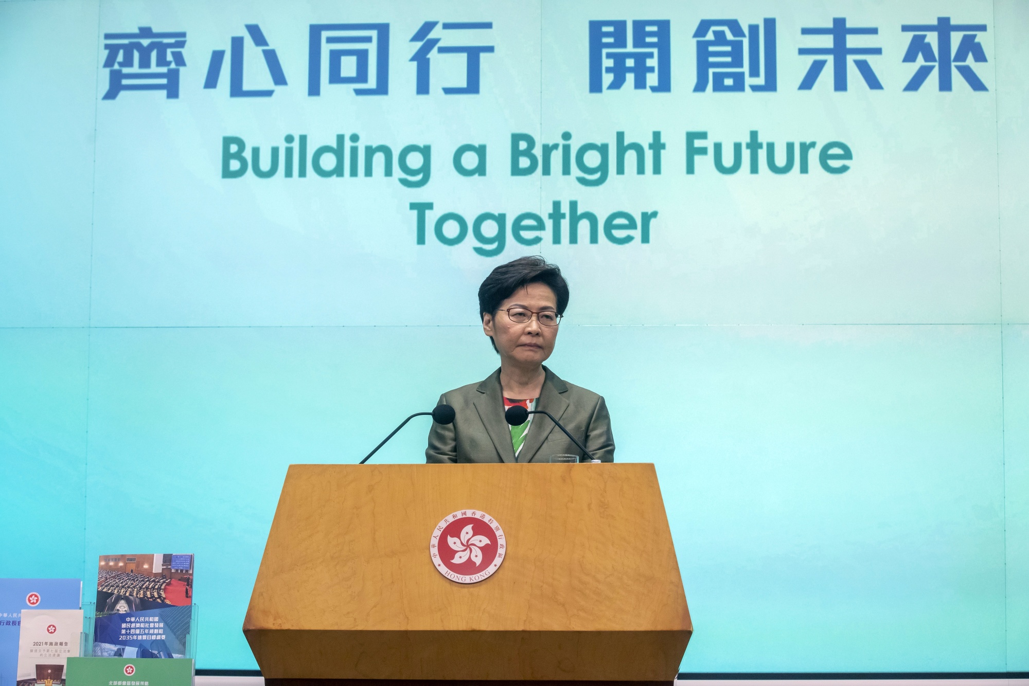 香港特首林郑月娥今天在新闻发布会上。