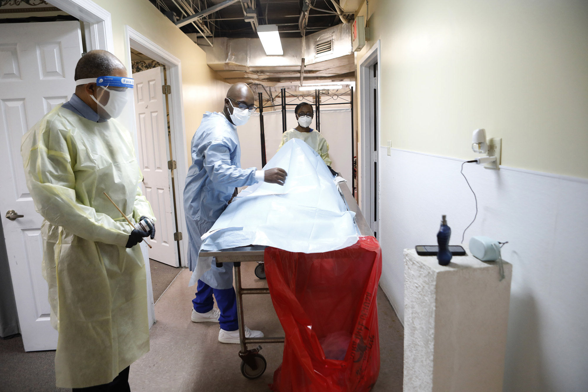 在佛罗里达坦帕,一家殡仪馆主任和殡仪助理为一名死于新冠疫情的男子准备葬礼。摄影师:Octavio Jones/Getty Images“黑人、拉丁裔和土著人口历来生活在收入较低、医疗和教育资源较贫乏的社区,与富裕的白人社区相比,” 德克萨斯州奥斯汀市急诊室医生、Wellness and Equity Alliance的联合创始人哈里森·洛布德尔说,他没有参与这项研究。“当第二波打击,比如新冠疫情,到来时,这些健康不平等的影响被放大,结果就是这些人口的超额死亡。”