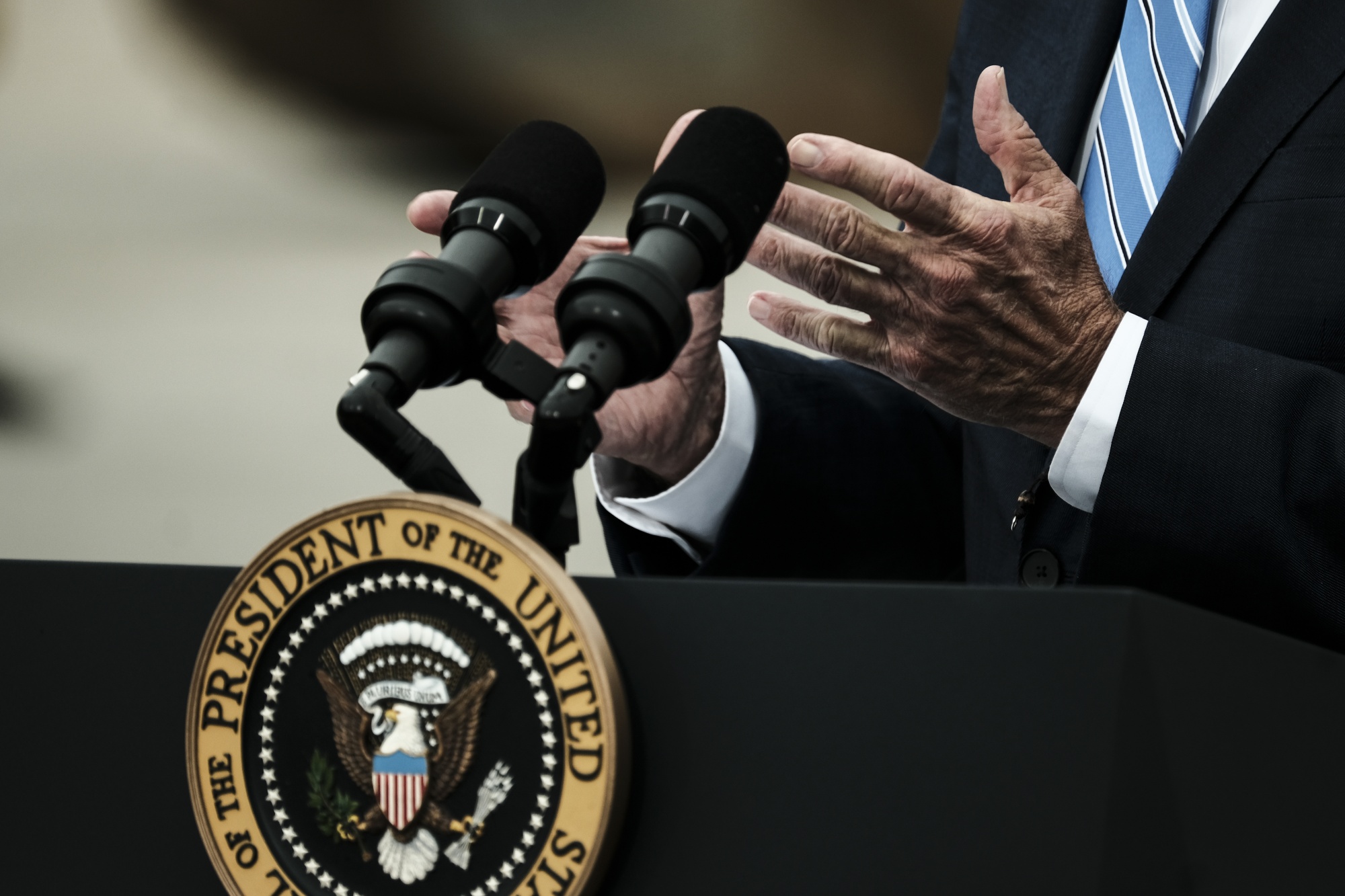美国总统乔·拜登10月5日在密歇根州豪威尔市国际操作工程师联合会324分会培训中心讲话。拜登正在寻求在中间派议员中巩固对其经济议程的支持。