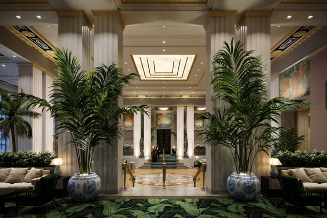 帕克大道大堂的效果图。来源:华尔道夫酒店Frank Mahan,斯基德莫尔、欧文斯和梅里尔的建筑师,正在监督华道夫酒店的翻新工程。重新开业计划于2023年。他的团队在尝试重新创造原始颜色时,使用显微镜研究了油漆碎片,并表示在保持对1931年氛围忠实的同时更新华道夫酒店是一个特别具有挑战性的任务。