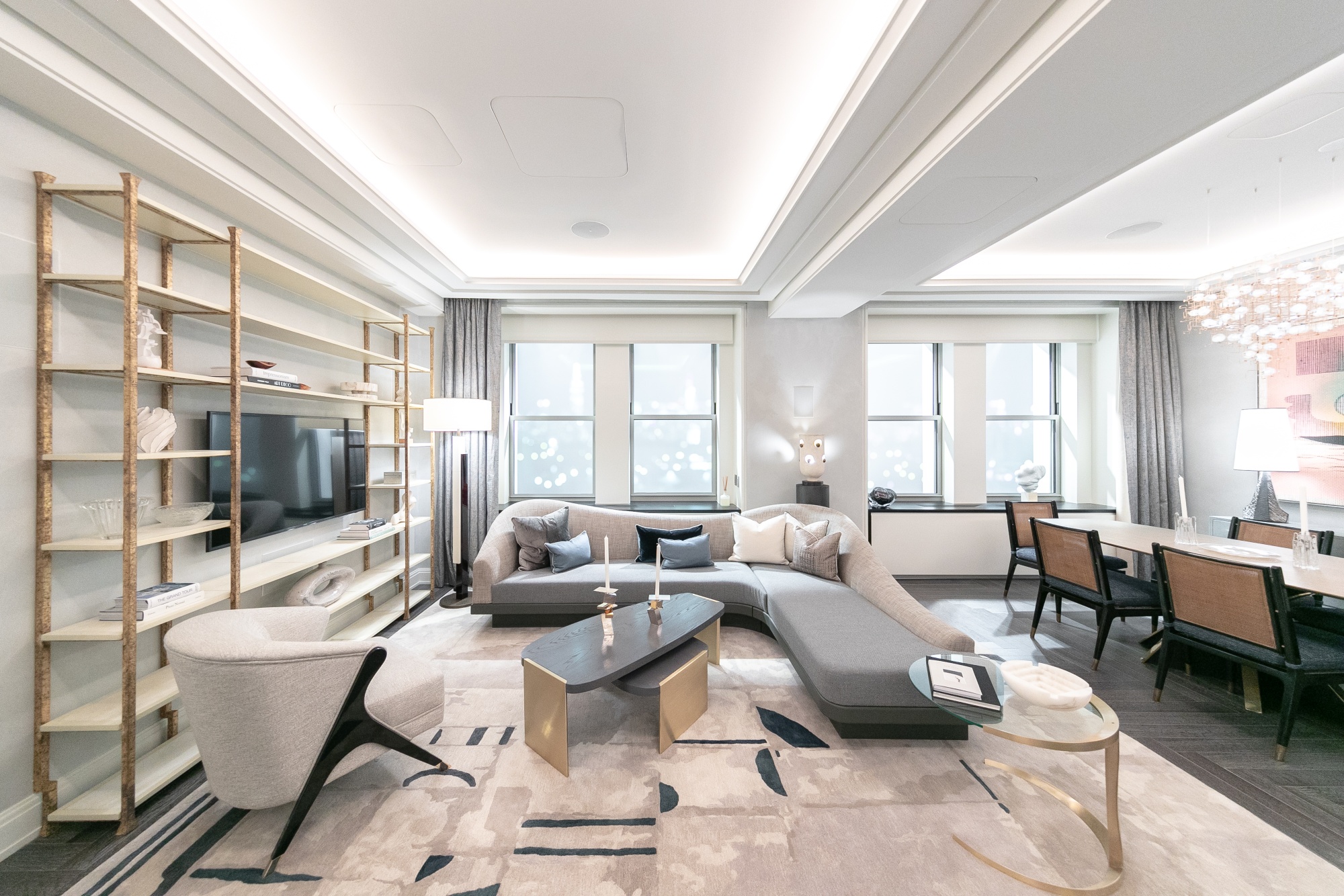 瓦尔道夫阿斯托利亚销售办公室的一个样板公寓的客厅和餐厅。摄影师:Jeenah Moon/彭博社新的瓦尔道夫确实会有更多公寓,即使空间不会像吴所希望的那样宽敞。将有375间酒店客房和375套公寓。去年开始销售,四居室单位的价格从180万美元到1850万美元不等。顶层公寓尚未定价。瓦尔道夫团队和房地产经纪人上周在一场庆祝活动中受到热情款待,以纪念该建筑的90周年,这是一个适时的时刻,因为纽约的公寓销售正在回升,某些指标已超过疫情前的水平。