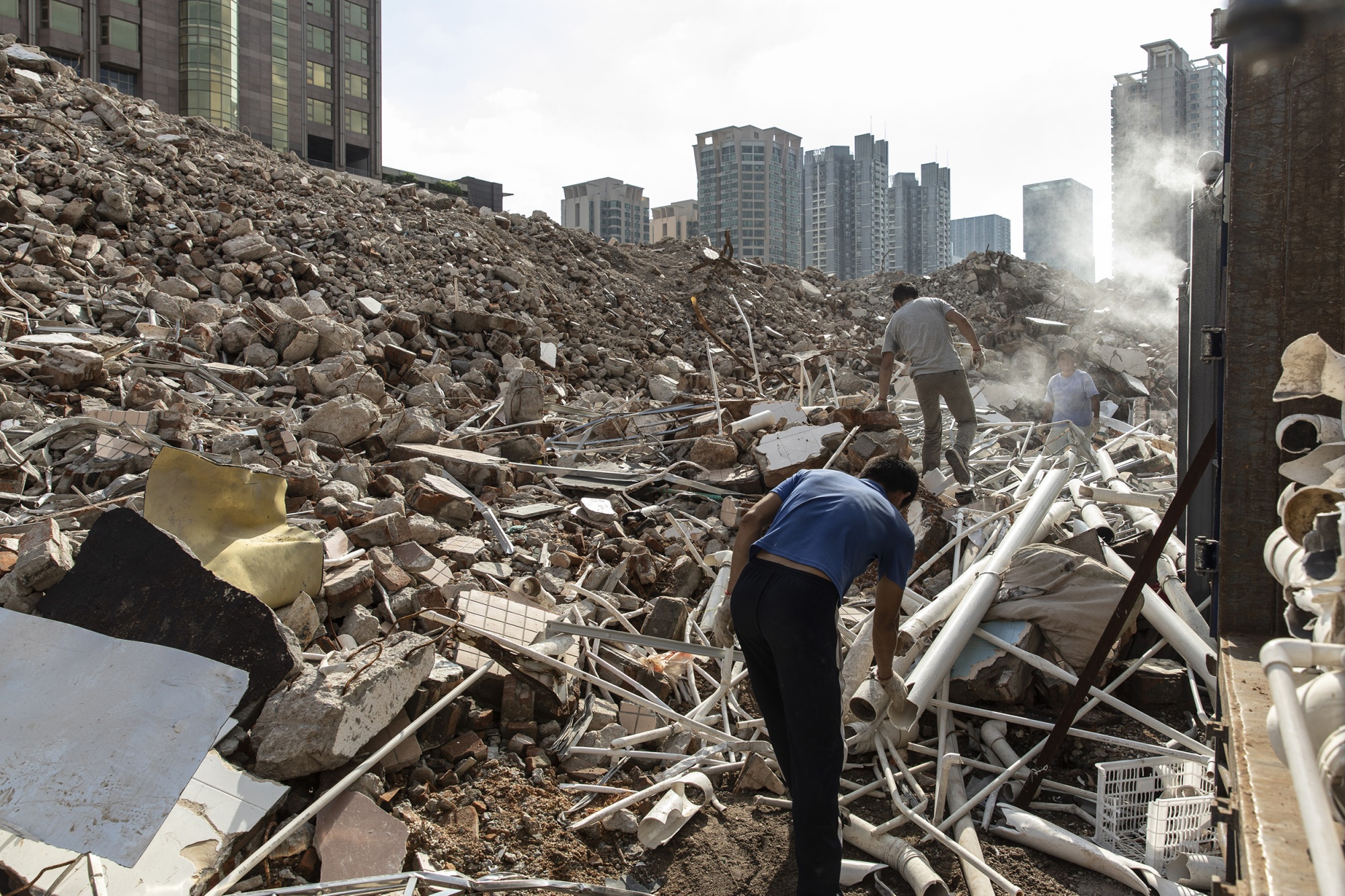 卓越集团在黄岗开发项目的拆迁工作。摄影师:沈其来/彭博社在另一个城中村玉绿,曾氏家族的成员每年可以分别获得约10万元的股息。那里许多年轻人在村企有着轻松的工作。与其他村庄一样,一些人不愿讨论自己的家庭背景,因为担心激怒那些境况不如自己的人。一位24岁的社会工作者曾凯瑟琳回忆说,一家潜在雇主仅仅因为她是村民就拒绝了她的求职申请。