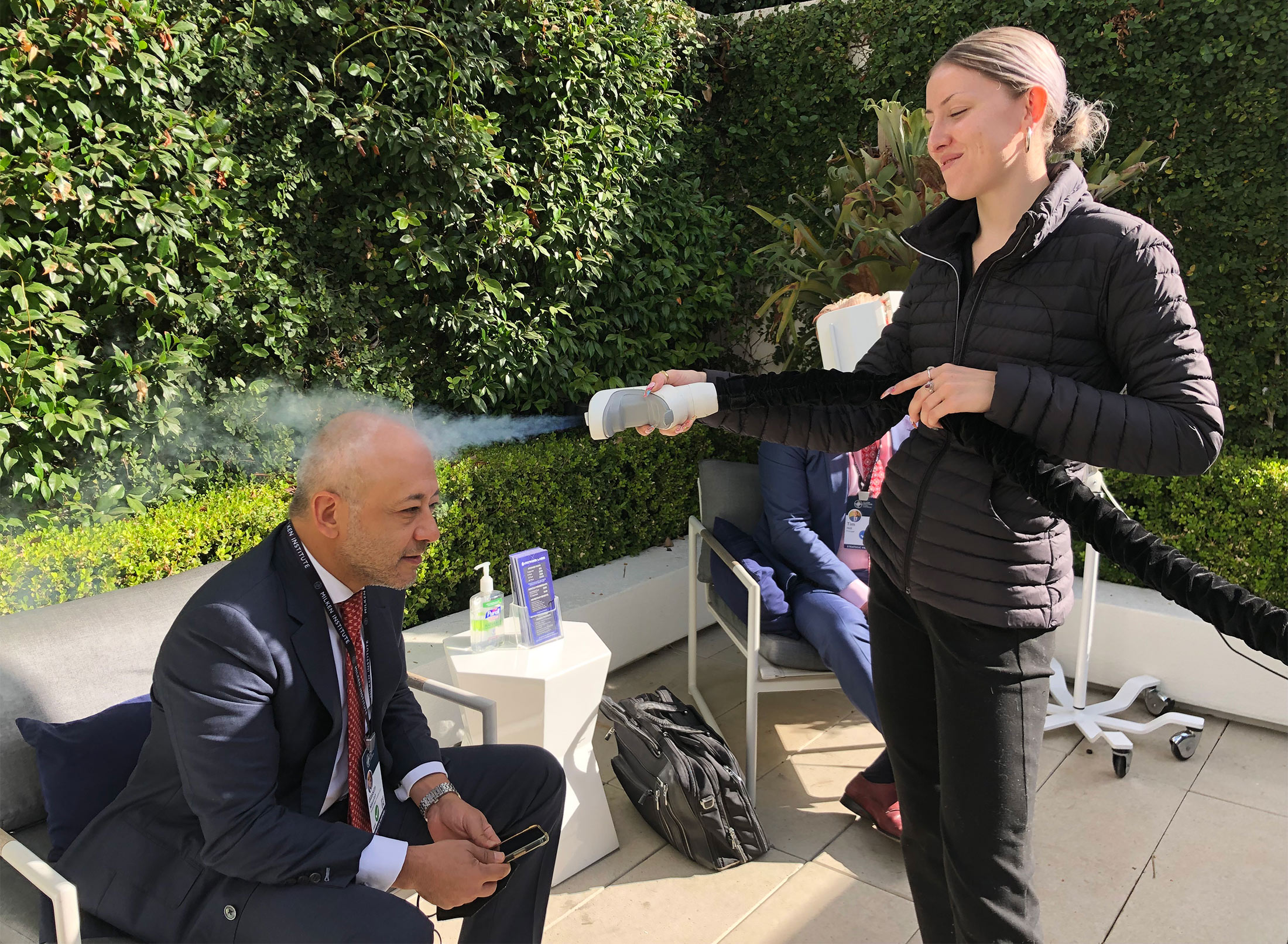 周一,米尔肯大会参与者在健康花园接受了五分钟的低温疗法面部护理。摄影师:Gillian Tan/Bloomberg罗杰·弗格森,最近担任TIAA首席执行官,曾是美联储的高级官员,已被选定为阿波罗公司的副主席。