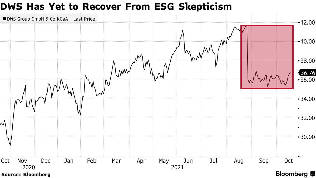 股东对欧洲资产管理公司持谨慎态度,因为迹象表明该行业正面临监管打击,涉及其在环境、社会和治理投资方面的声明,根据一项 最新分析*。德意志银行的资产管理部门DWS在美国和德国受到调查,否认了其在ESG业务范围上失实陈述的指控,并且尚未从因投资者恐慌引发的14%股价暴跌中恢复过来。*