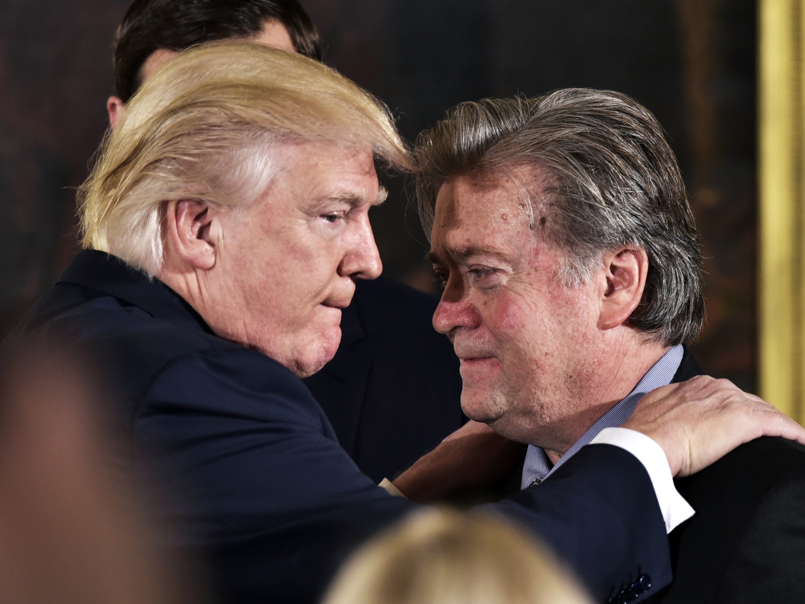 特朗普在2017年1月22日白宫高级工作人员宣誓就职时祝贺班农。摄影师:Mandel Ngan/AFP/Getty Images离任的担忧 | 安格拉·默克尔担心一些欧盟领导人将欧盟推向与波兰的斗争,这种斗争不留任何妥协的余地。在担任德国总理的最后几周里,她以外交方式公开警告他们的策略,但在幕后,默克尔深感担忧,担心在对华沙就法治争端展开报复的匆忙行动可能会失控。