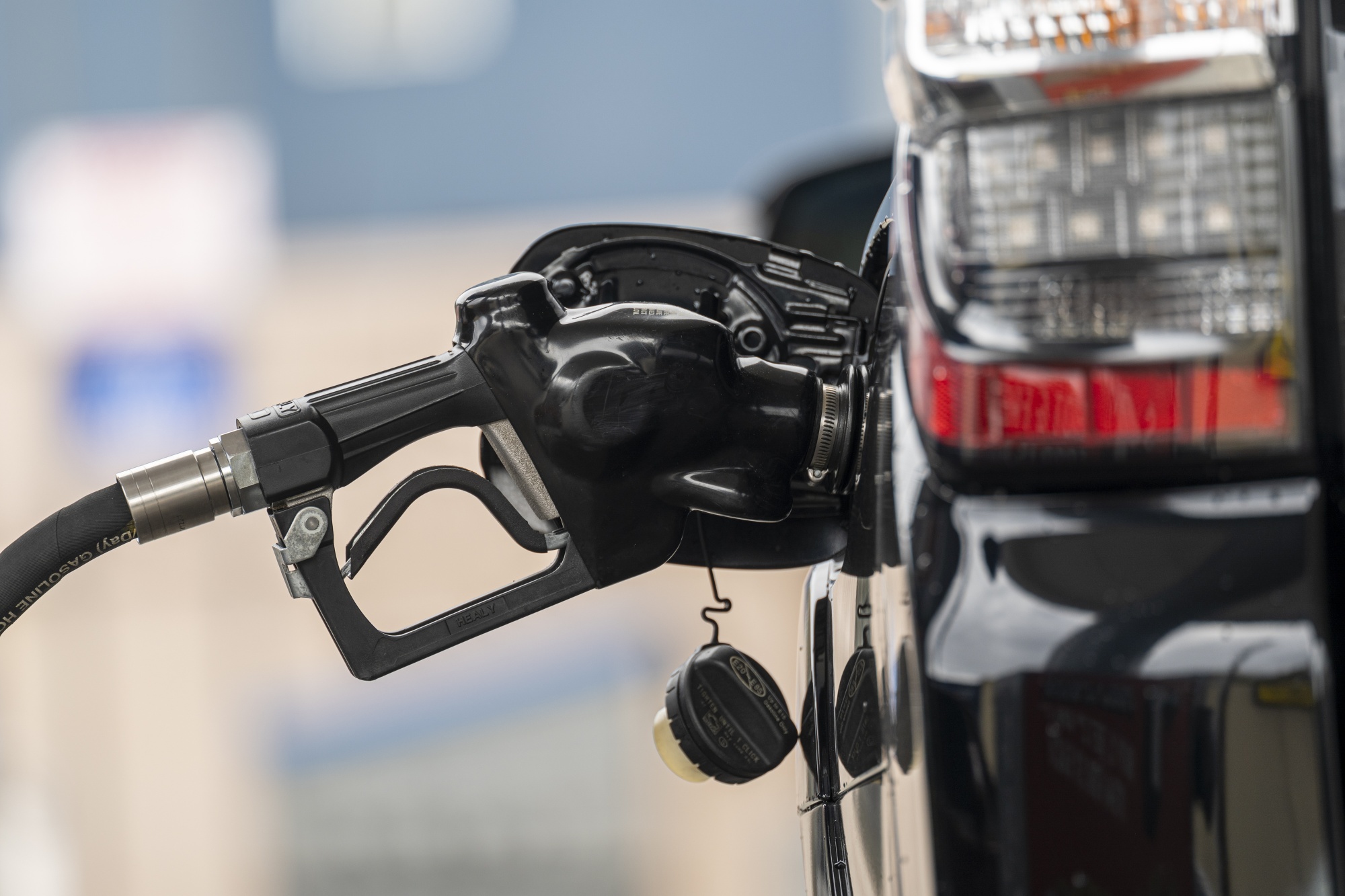 旧金山,加利福尼亚州的一个加油站里的汽车燃油喷嘴。