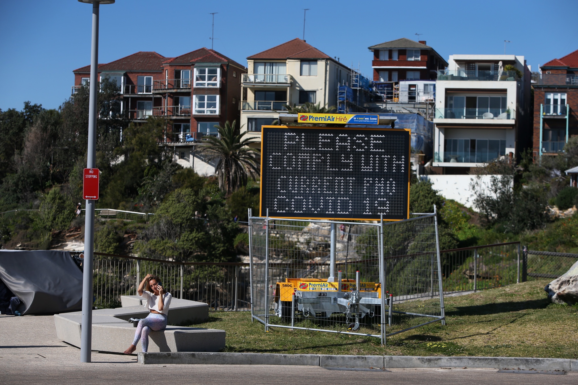 一个人坐在邦迪海滩附近的数字新冠疫情公告牌旁。摄影师:Lisa Maree Williams/Getty Images AsiaPac随着疫苗接种率的提高(新南威尔士州超过90%的成年人至少已接种了一剂疫苗),每一天都带来新的自由的承诺。墨尔本在长达260多天的封锁期后,于周五重新开放,同时达到了自己的接种里程碑。