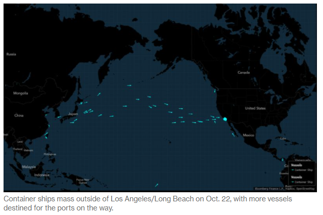 - 港口拥堵 | 供应问题仍然严重,洛杉矶和长滩这两个美国最大的海运门户之外的船只积压情况可能会恶化。