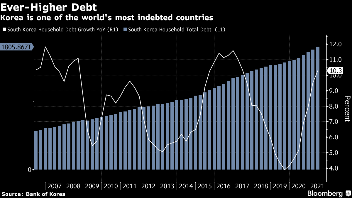 家庭拥有的总债务在第二季度激增了10%,这得益于新冠大流行期间廉价借贷成本以及多年来的政策失误,导致房价不可及。这使得债务与可支配收入比率达到了前所未有的172%,促使央行在8月份首次提高利率,成为发达亚洲经济体中的第一个这样做的国家。