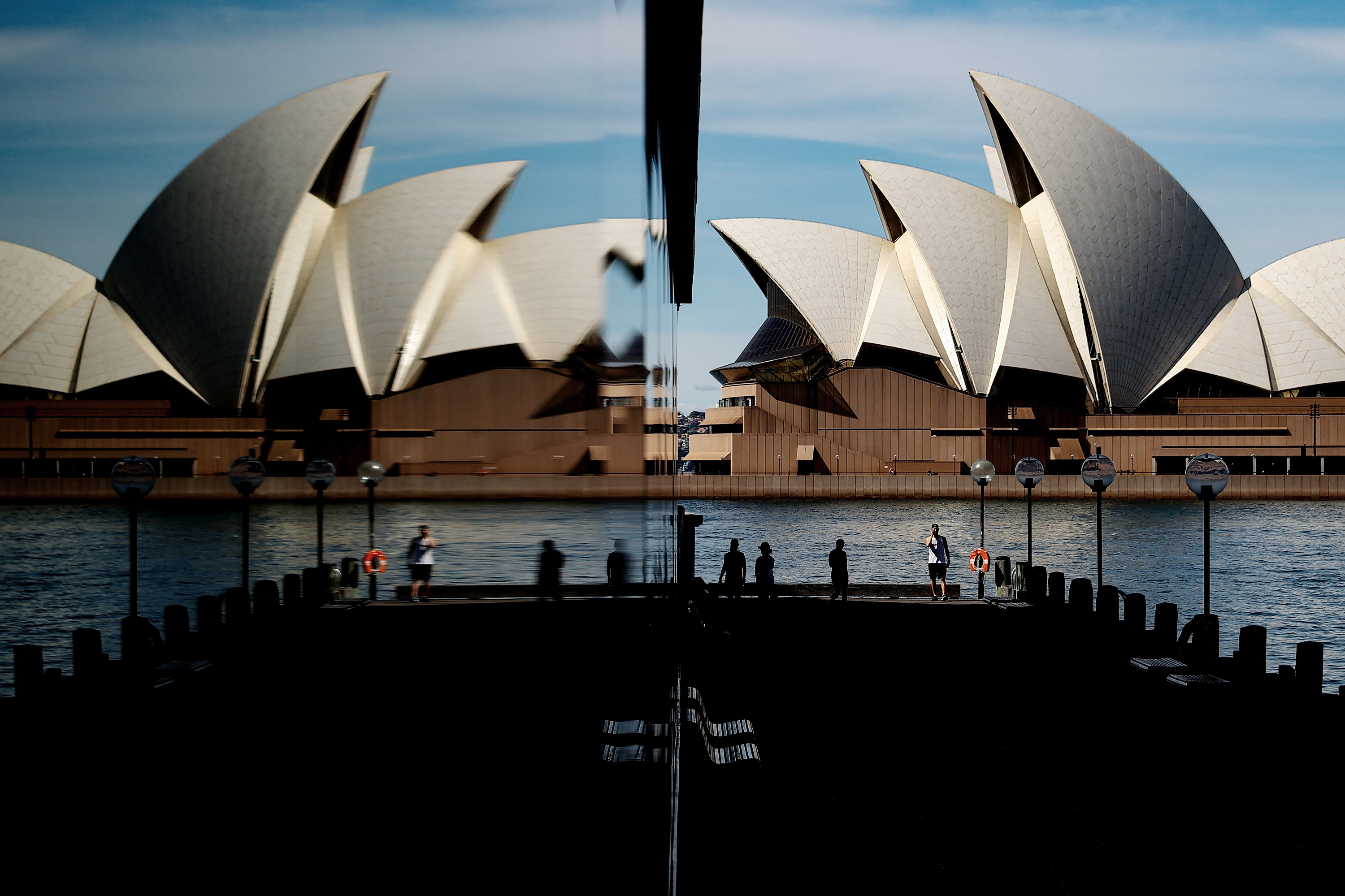 在悉尼歌剧院对面的岩石区,人行道上的行人在建筑物中映射出来。摄影师:Brendon Thorne/Bloomberg### 您应该阅读的内容