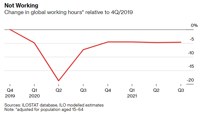 这个总部位于日内瓦的组织称之为“戏剧性修订”,现在估计今年全球工作时间将比疫情前水平低4.3%,相当于1.25亿个全职工作岗位。