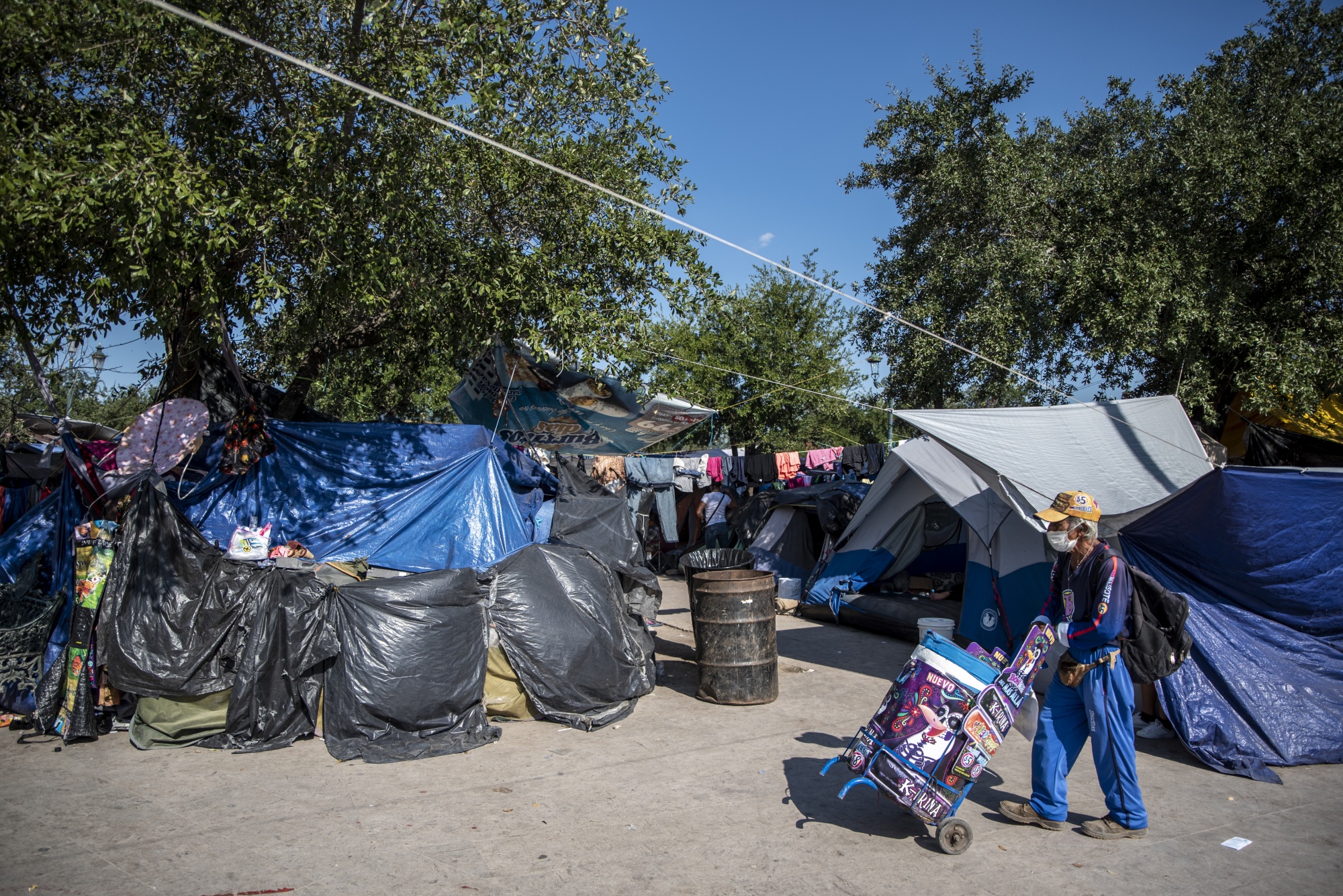 墨西哥塔毛利帕斯州的移民营。摄影师:Sergio Flores/Bloomberg