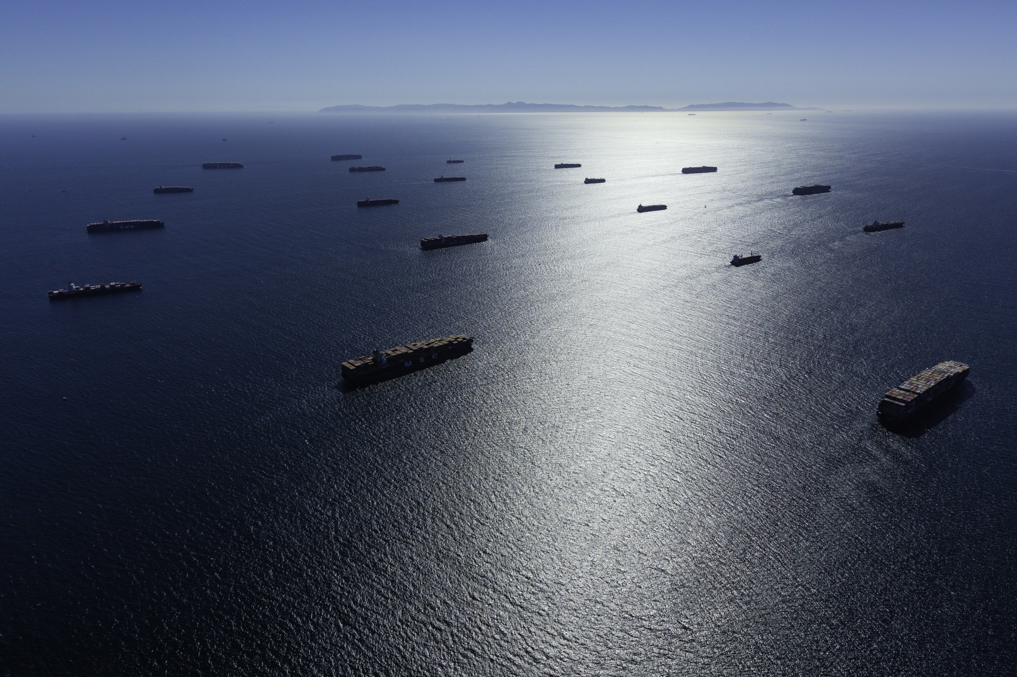 例如,洛杉矶外停泊的70多艘船上装载着足够的装满商品的20英尺集装箱,如果排成一排,足以从南加州一直延伸到芝加哥。