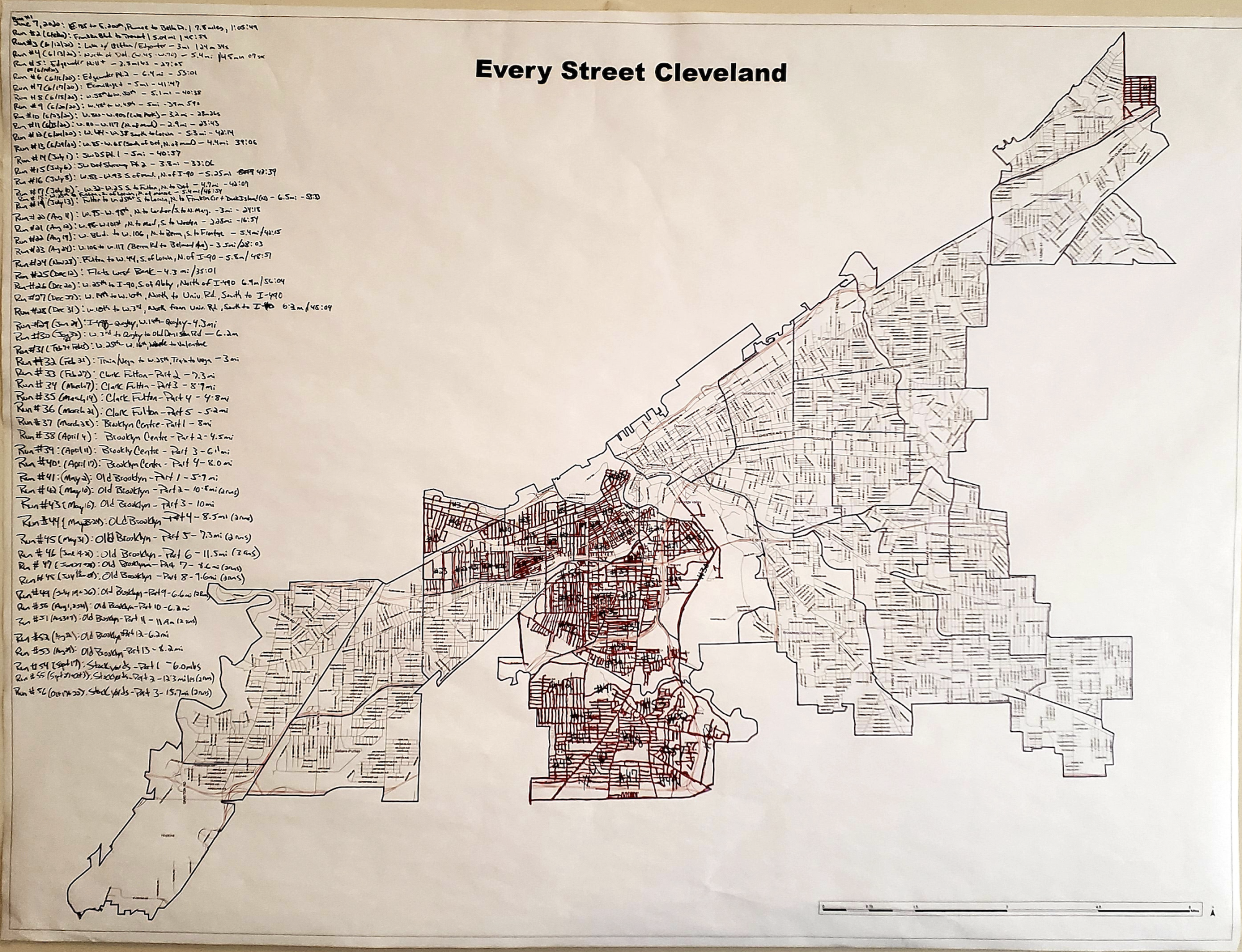 每条街道克利夫兰:Phil Kidd在他的第26次跑步中发现了这个标志,试图徒步走完克利夫兰所有1,500英里的街道。