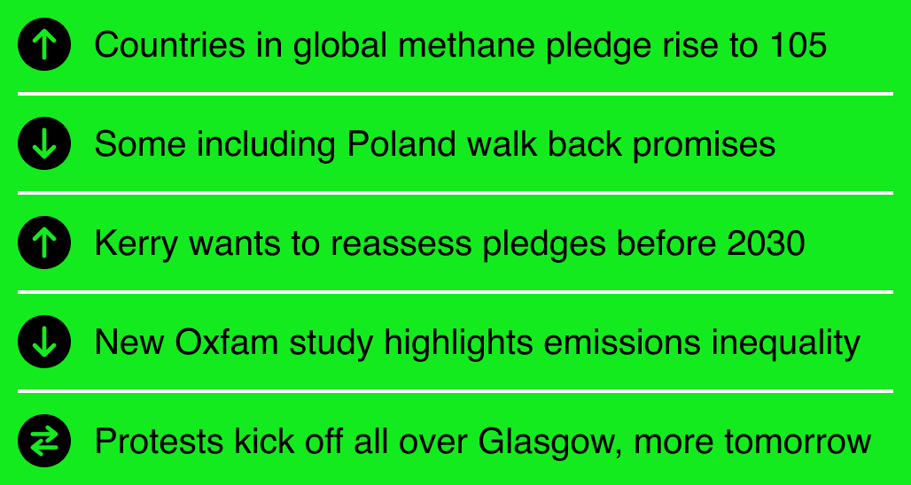 周五,随着成千上万的抗议者走上格拉斯哥的街头,气候行动走出了组成COP26“蓝区”的巨大帐篷之外。