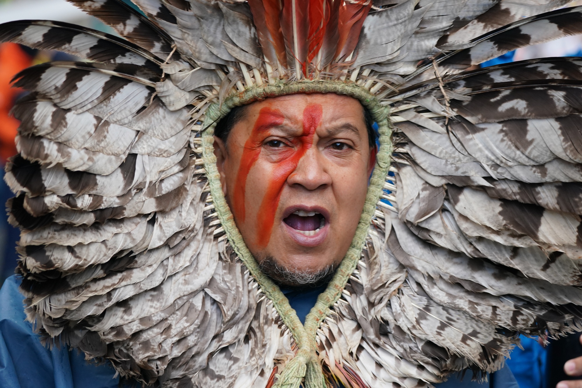摄影师:Andrew Milligan/PA Images/Getty Images“我是巴西土著,今天我在这里是为了让人们意识到正在发生的事情,也是为了土著人民,” 54岁的阿尔贝托·特雷纳说。“森林的破坏,河流的污染以及正在发生的无数罪行,这就是我在这里的原因。”