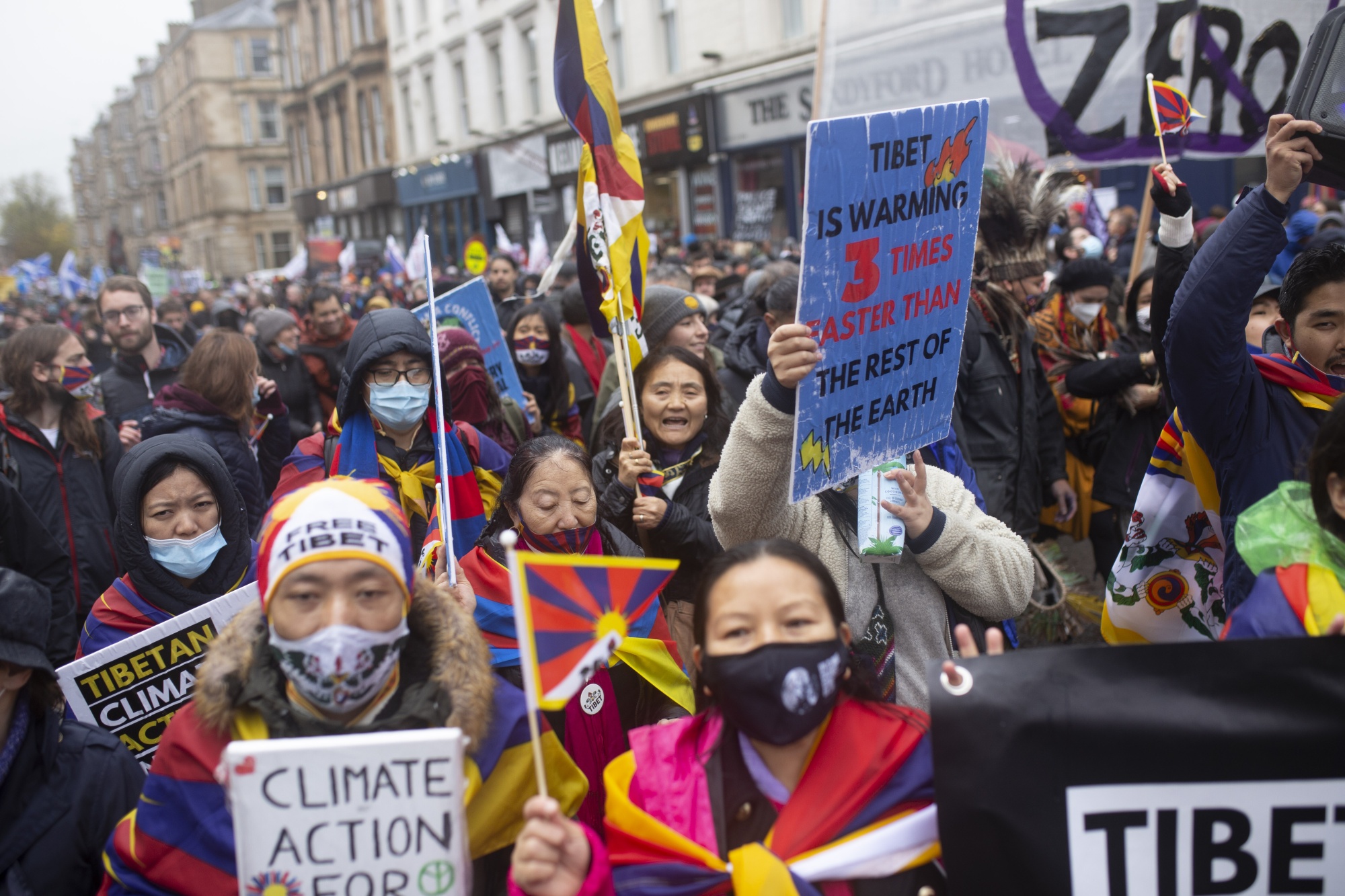 数万名抗议者在周六平和地穿过格拉斯哥市中心,敦促出席COP26气候谈判的政治家和商界领袖采取更多行动来遏制全球变暖。
