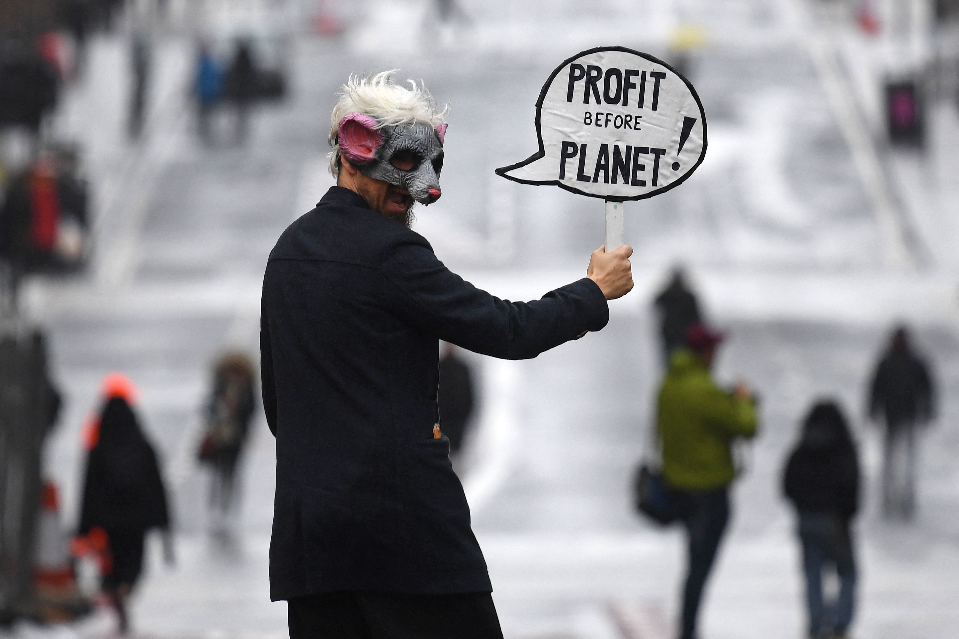 红色叛军旅团的成员,一个国际表演团体。摄影师:BEN STANSALL/AFP在会议中心内,谈判代表们正在努力取得突破,就如何建立一个全球碳市场展开紧张的讨论,该市场有可能向发展中国家的绿色项目提供更多资金。关于抗议者,COP26主席阿洛克·夏尔马表示:“他们想看到成果。这是我们需要看到成果的COP。”
