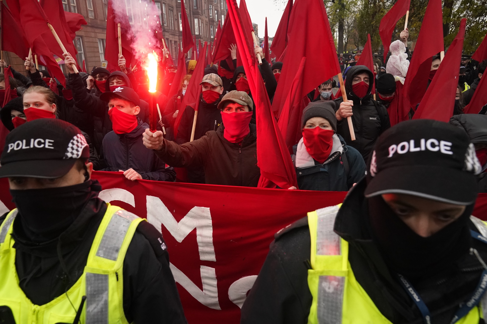 抗议者参加了由Cop26 Coalition在格拉斯哥组织的集会,11月6日。