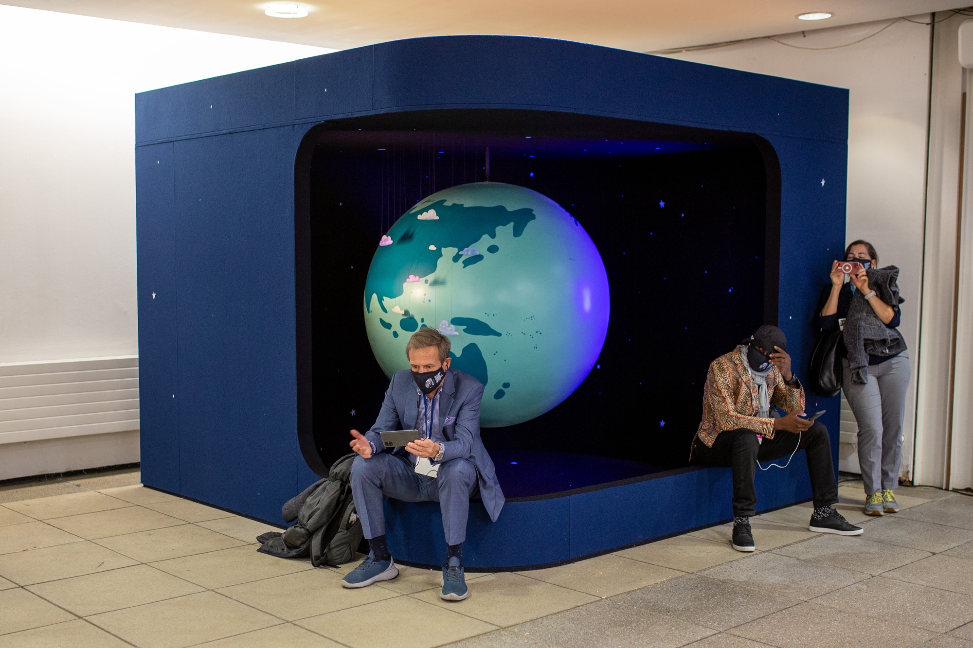 参加者在英国格拉斯哥举行的COP26气候谈判期间,于11月3日。 COP26峰会上的气候谈判代表们指望世界上最有权势的领导人在他们开始为期两周的充满紧张讨论的前夕给予他们支持,讨论的内容是谁应该采取什么行动来减缓全球温度上升。