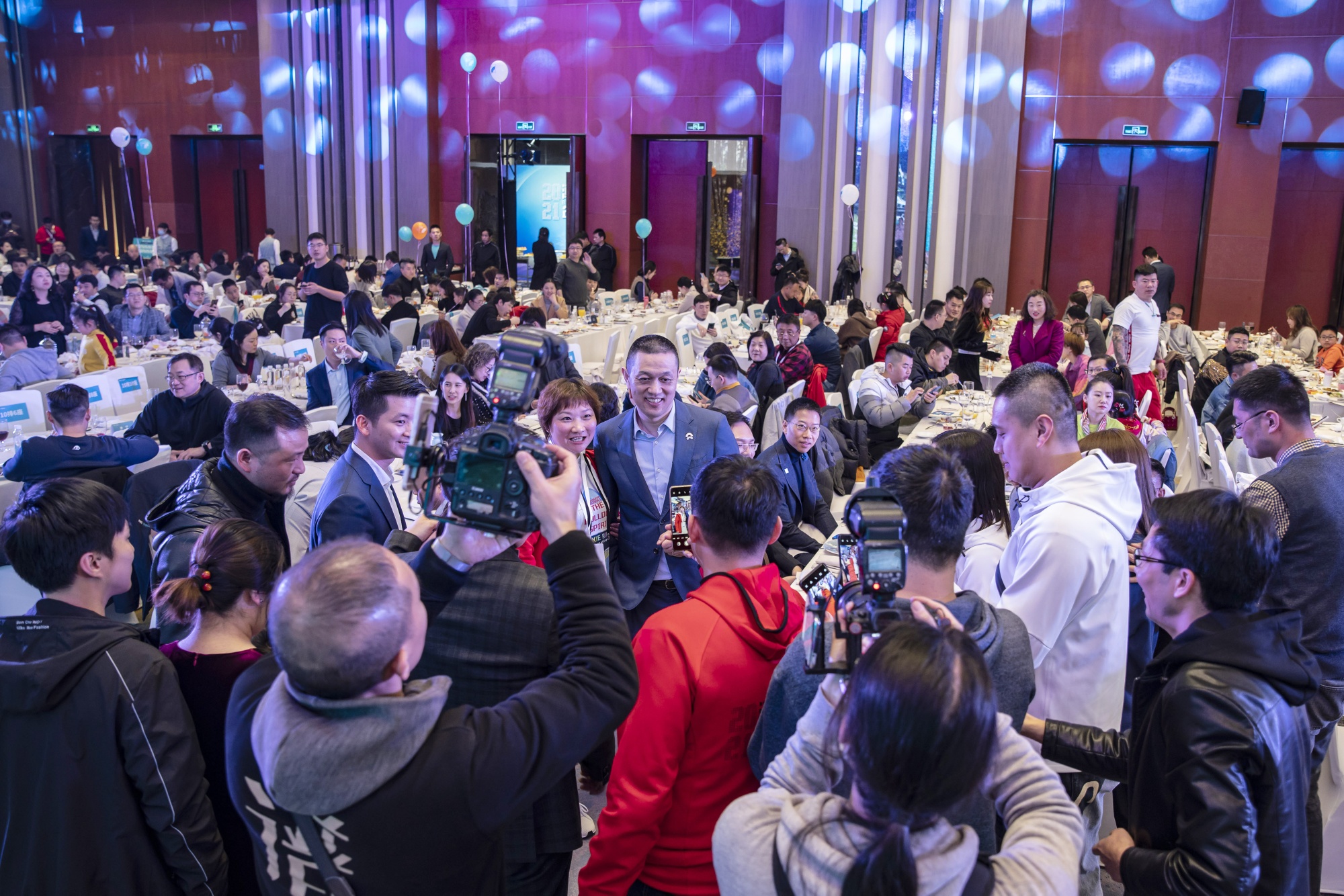 蔚来汽车首席执行官李斌在三月份的上海与车主共进晚餐时合影。