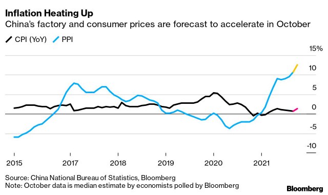 中国的通货膨胀风险正在增加,而新的新冠疫情爆发正在淡化经济增长前景,将政策制定者推到聚光灯下,因为共产党的最高领导人本周将齐聚一堂进行一次关键的政治会议。