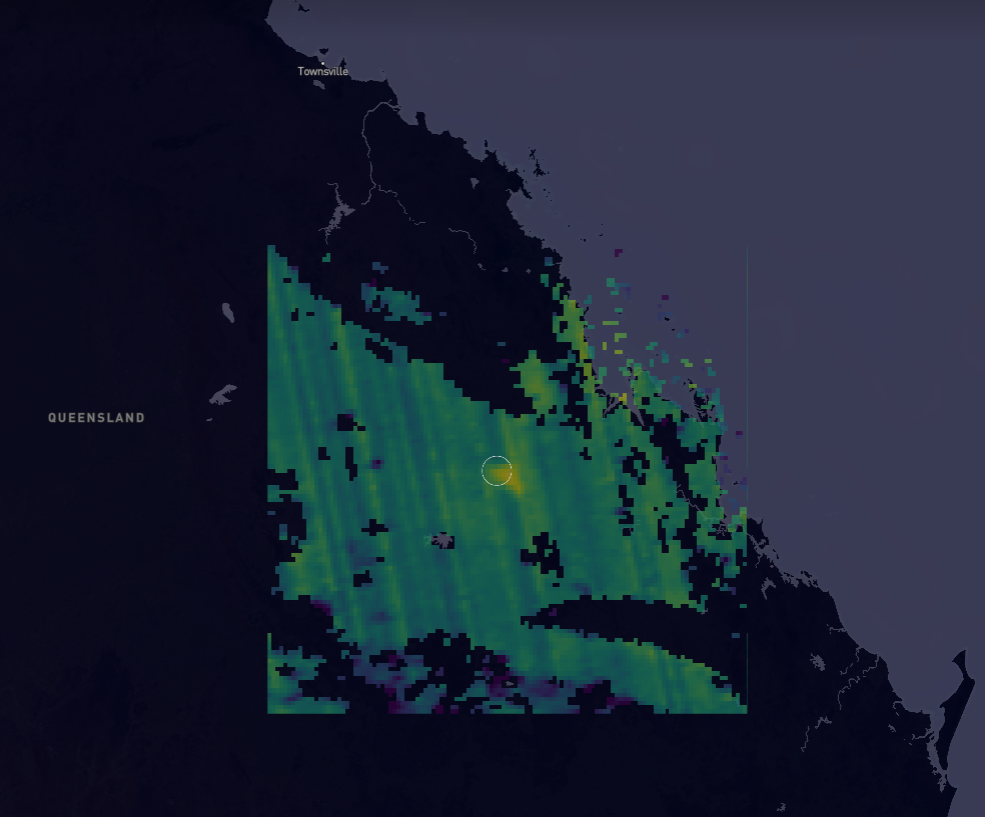 卫星观测到上个月昆士兰上空的甲烷喷流。