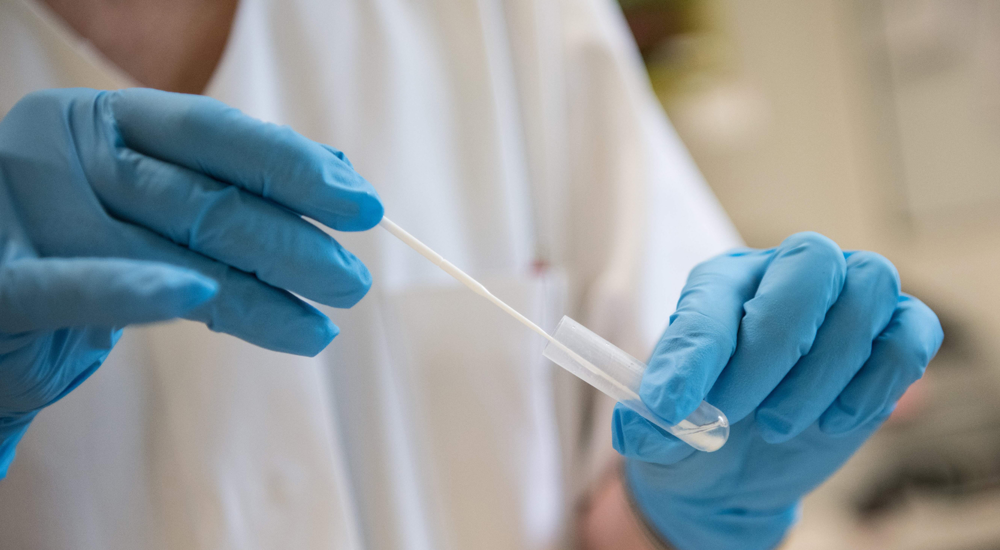 一名戴着防护手套的护士正在为冠状病毒进行快速抗原检测。