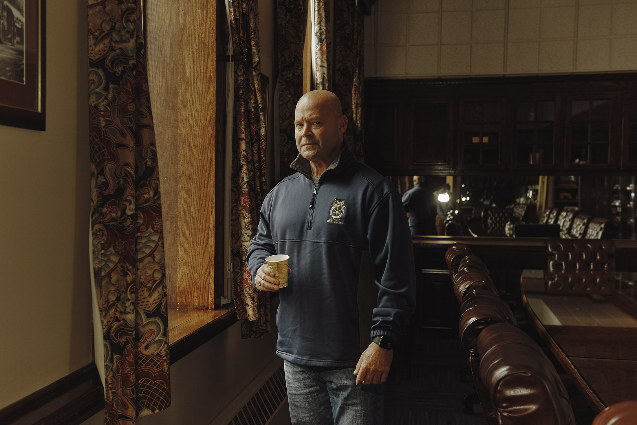 肖恩·奥布莱恩在马萨诸塞州查尔斯敦的国际司机工会25号分会大厅。