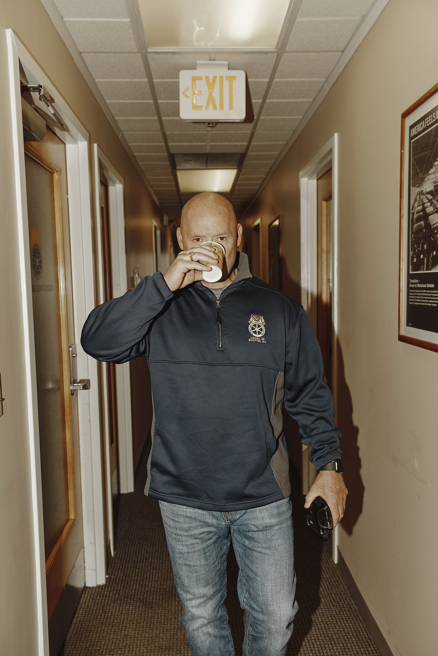 十月中旬的一个星期天早晨,他回到波士顿参加当地25号工会的月度会议。自疫情开始以来,会议一直在工会大厅外的停车场举行。周围是以前的工厂,其中许多可能曾经雇佣过工会会员。它们现在正在改建成高档公寓楼。咖啡壶已经摆好,甜甜圈也摆出来了。会员们从早上8点开始陆续到达,董事和业务代表穿着西装,基层员工穿着T恤和连帽衫。其他人骑着摩托车大声驶过,穿着皮衣。