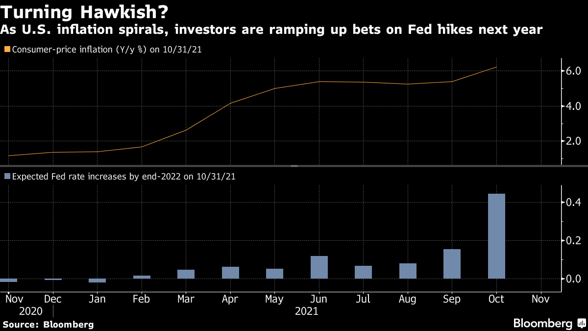 银行高管们 担忧,亿万富翁们也在 担忧。美国消费者从未如此 担忧。尤其是债券交易员们,他们也在担忧。而本周,这些担忧成为现实:美国十月份的通胀率达到了6.2%,是自1990年以来的 最高水平。